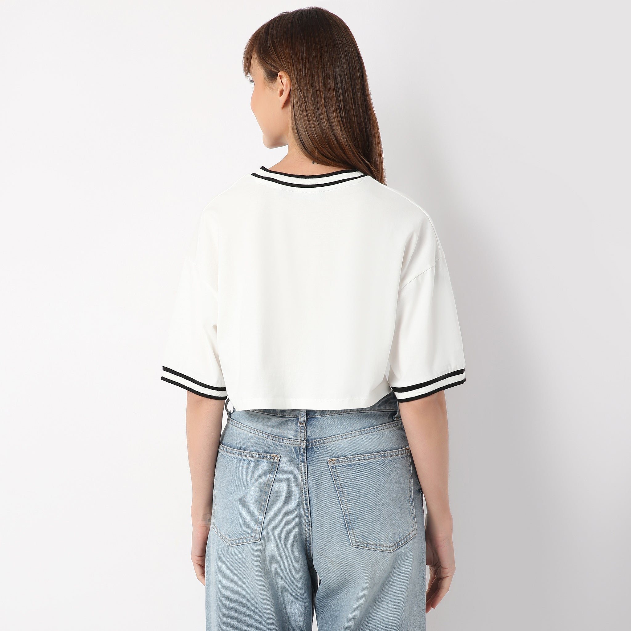Boxy Fit V-Neck Athleisure Graphic Crop Tee