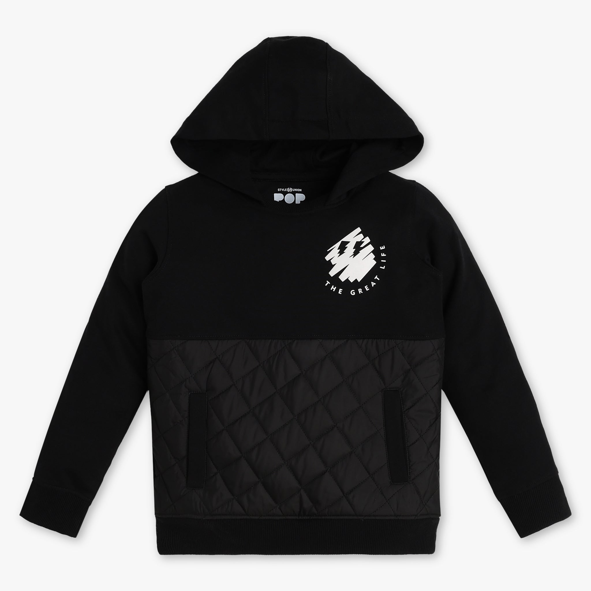 Experience the perfect blend of comfort and style with our Boys Pop Sweat Tee. Crafted from a soft cotton polyester blend, this tee offers a cozy feel while ensuring durability and easy maintenance. The hoodie design adds a trendy touch, making it a versatile piece for any casual outing.