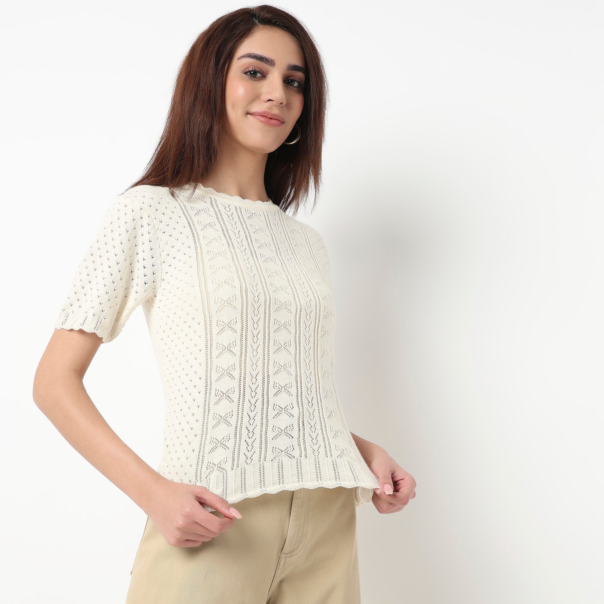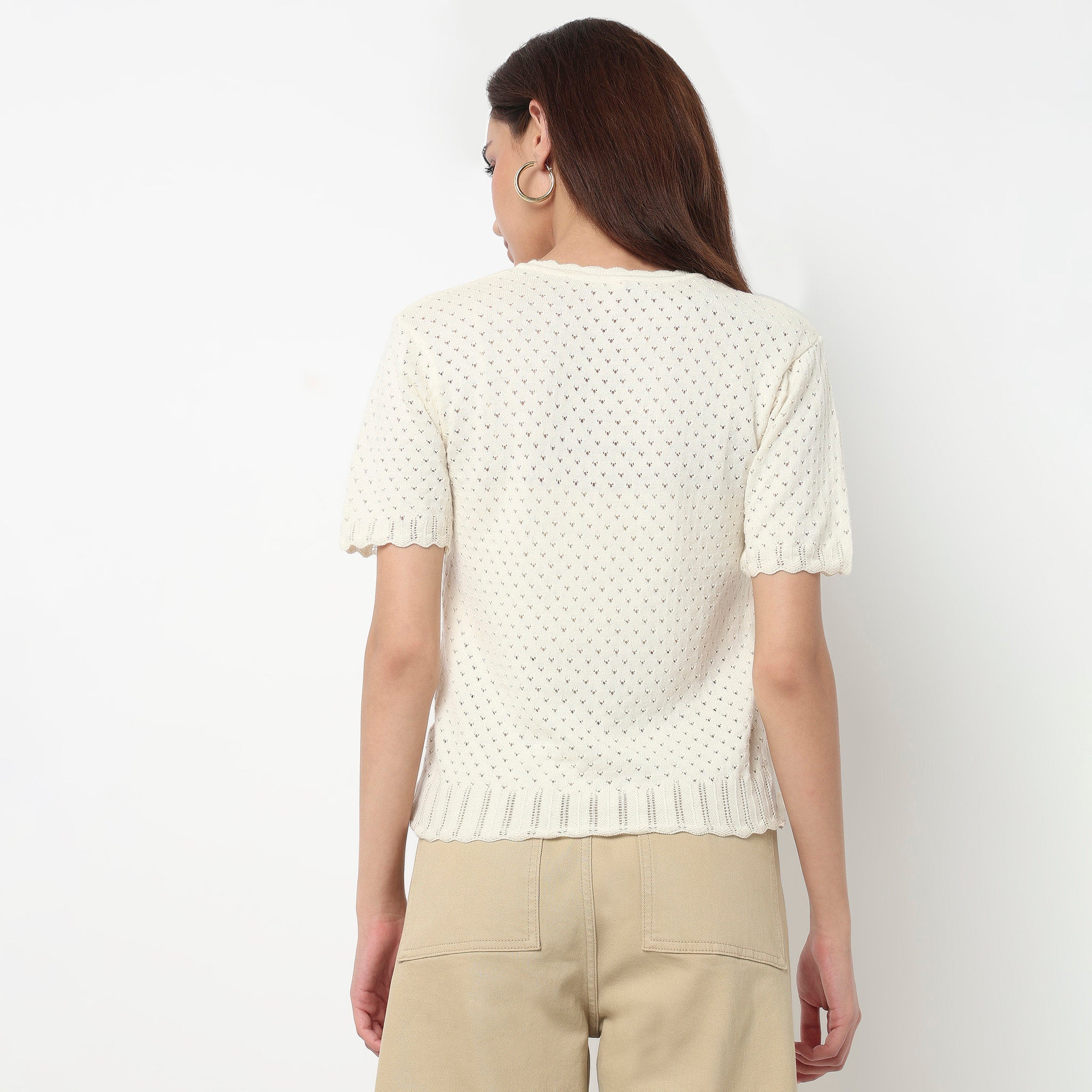 Introducing the Cotton Flat Knit Top, a versatile addition to any woman's wardrobe. Crafted from soft cotton, this top offers both comfort and style, making it perfect for everyday wear.