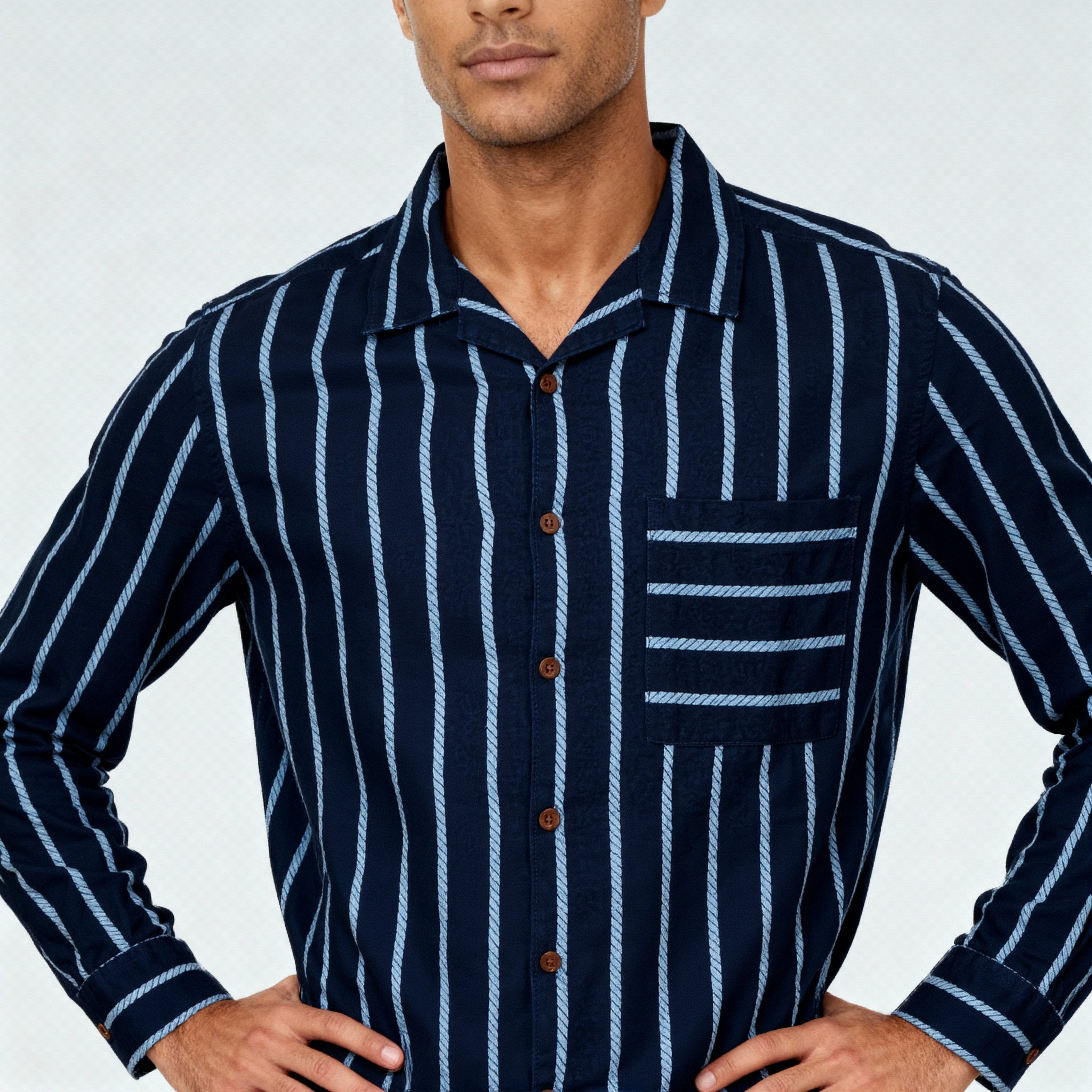 Introducing the Cotton Striped Cruiser Shirt, a stylish yet versatile choice for men. Crafted from high-quality woven cotton, this shirt combines comfort with a classic striped pattern, making it perfect for both casual and semi-formal occasions.