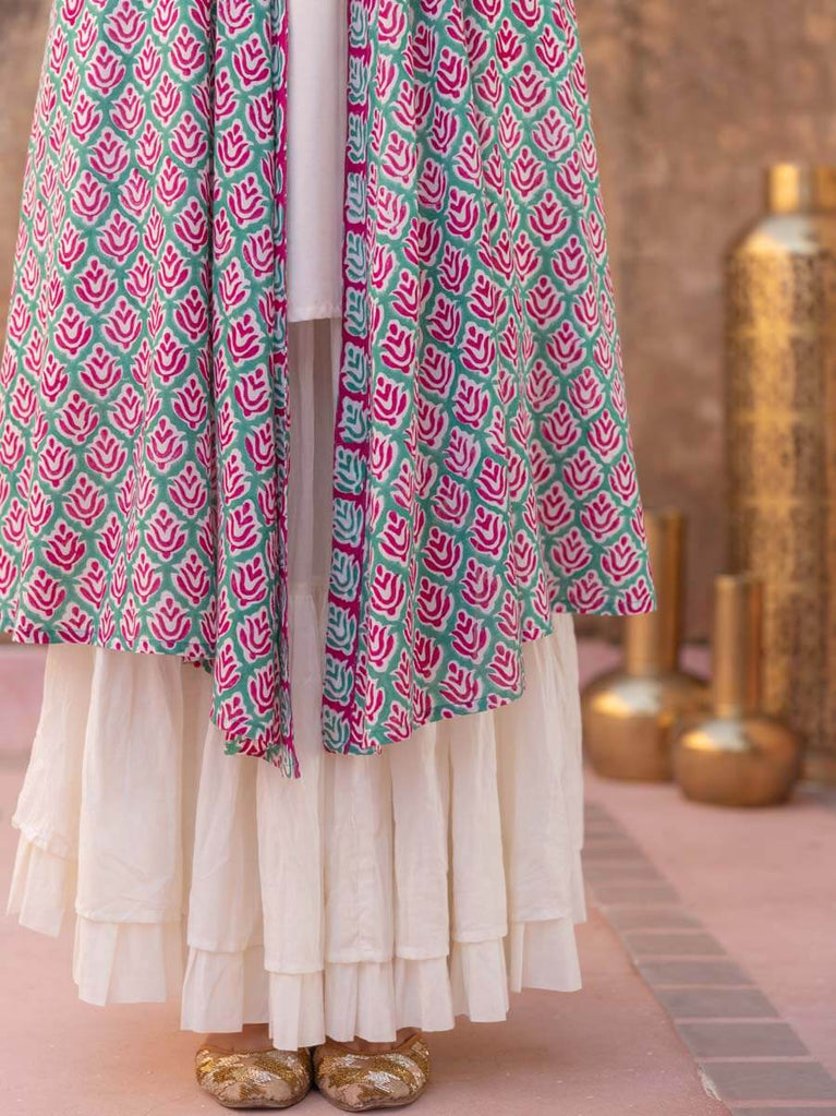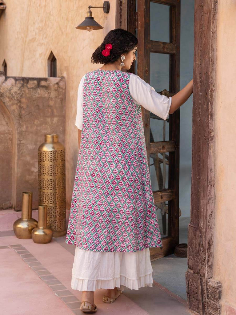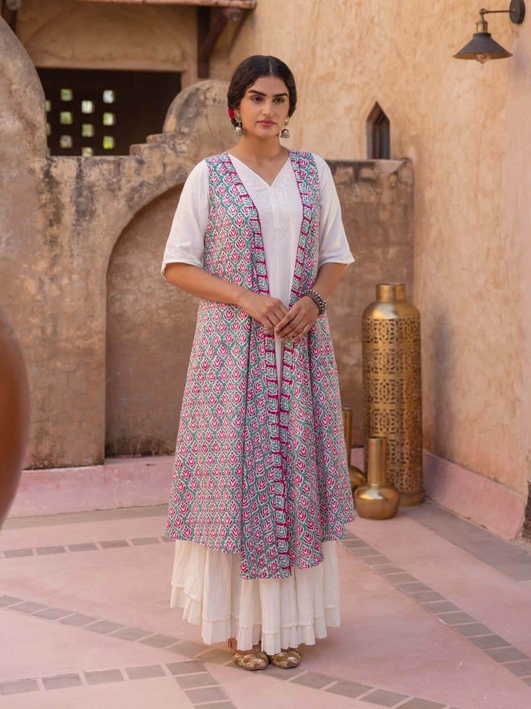 Pink Floral Block Printed Modal Silk Cape