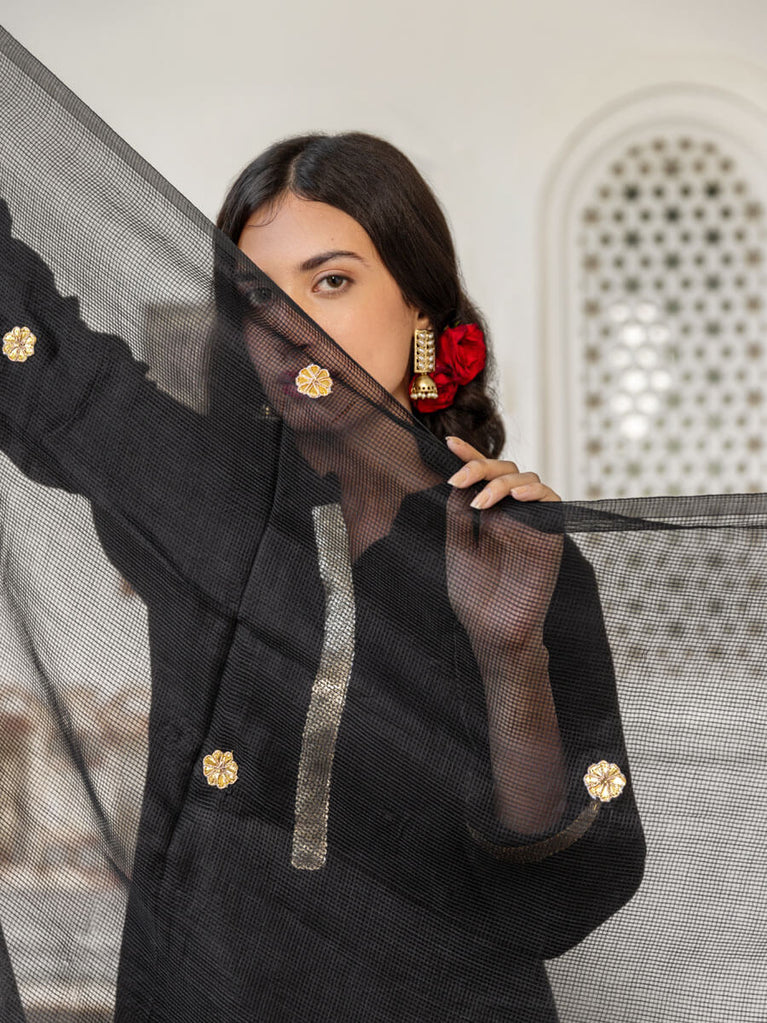 Nisha Silk Kota Doria Black Dupatta