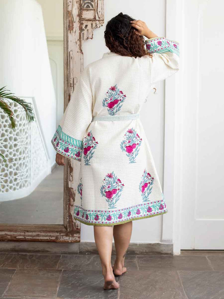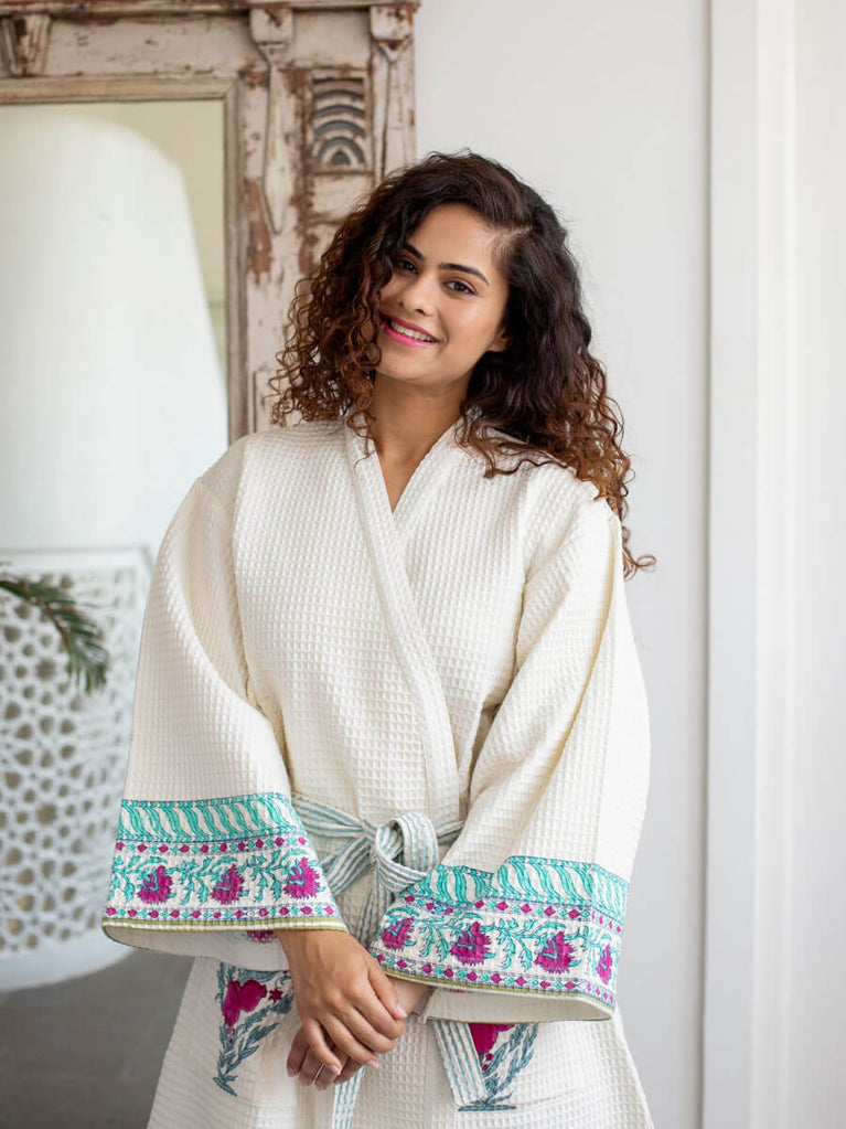 Pinar Waffle Block Printed Cotton Bath Robe