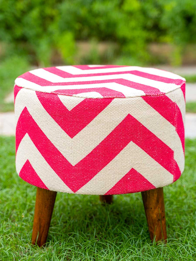 Pink Blossom Solid Wood Ottoman