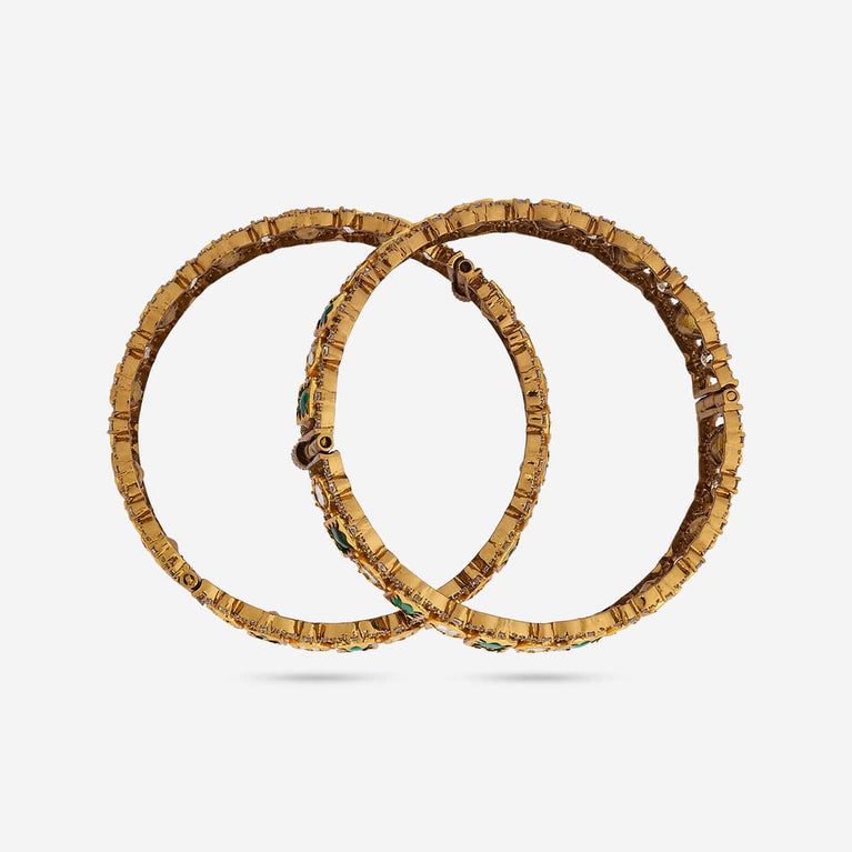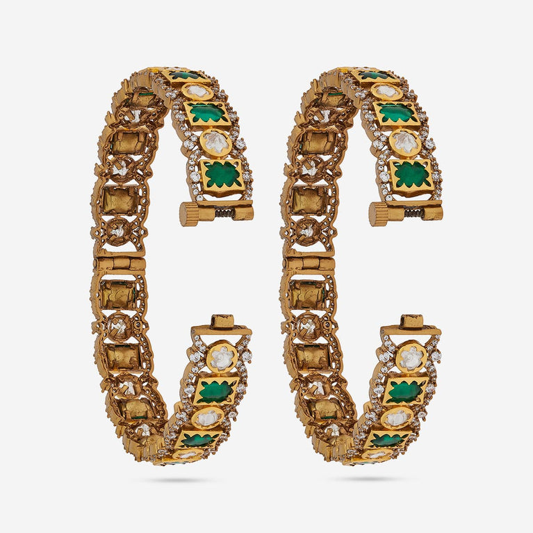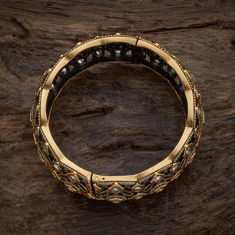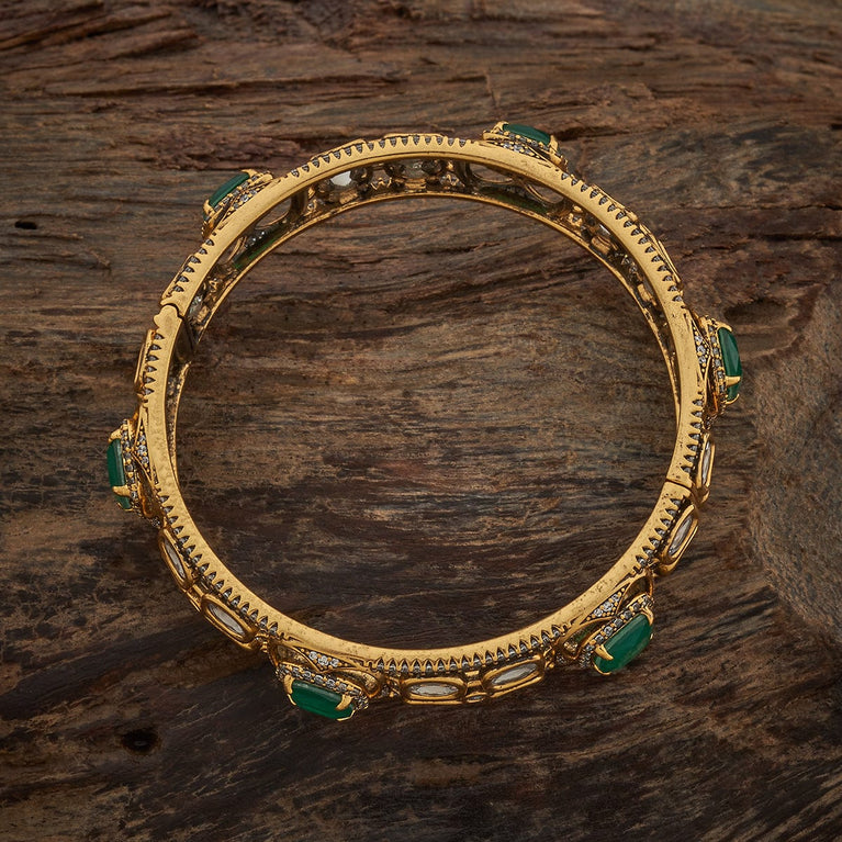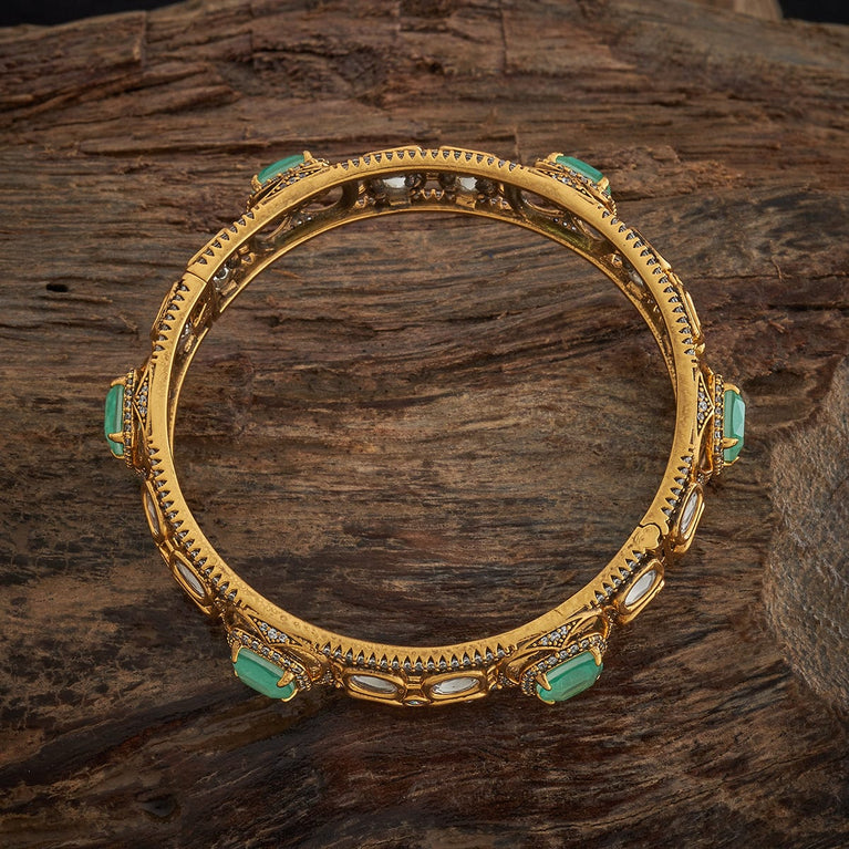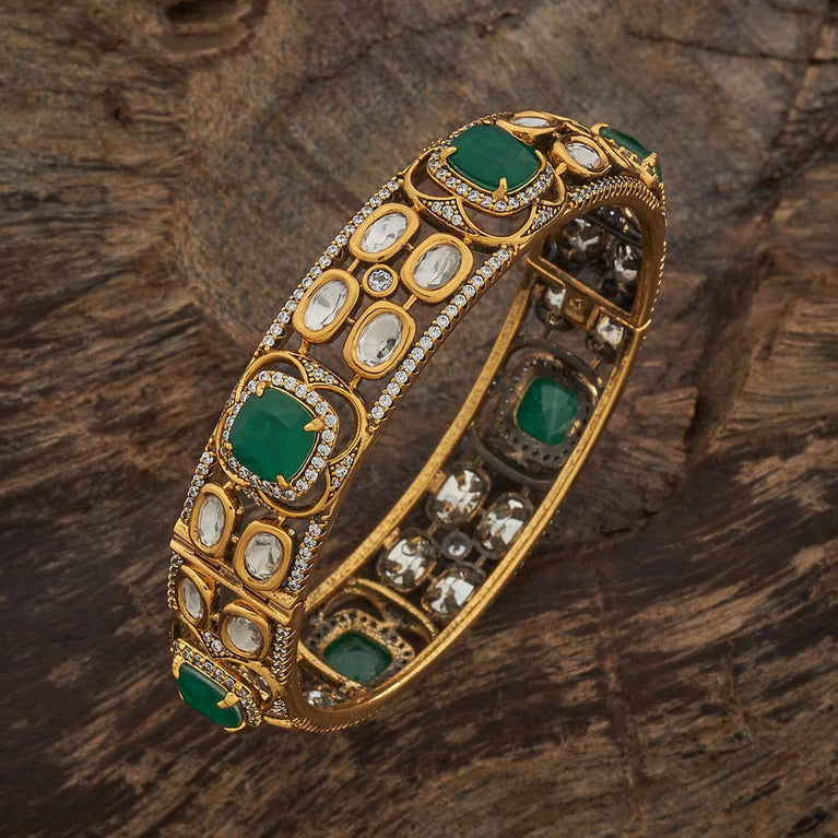 Kushal's Fashion Jewellery Kundan BangleKundan stones are splendid on their own, but when paired with other stones, you get an accessory that blinds everyone with its shine, like our latest Kundan bangle with green stones. The locking system of this bangle will keep you comfortable at all times for the best wearing experience with your favorite outfit.