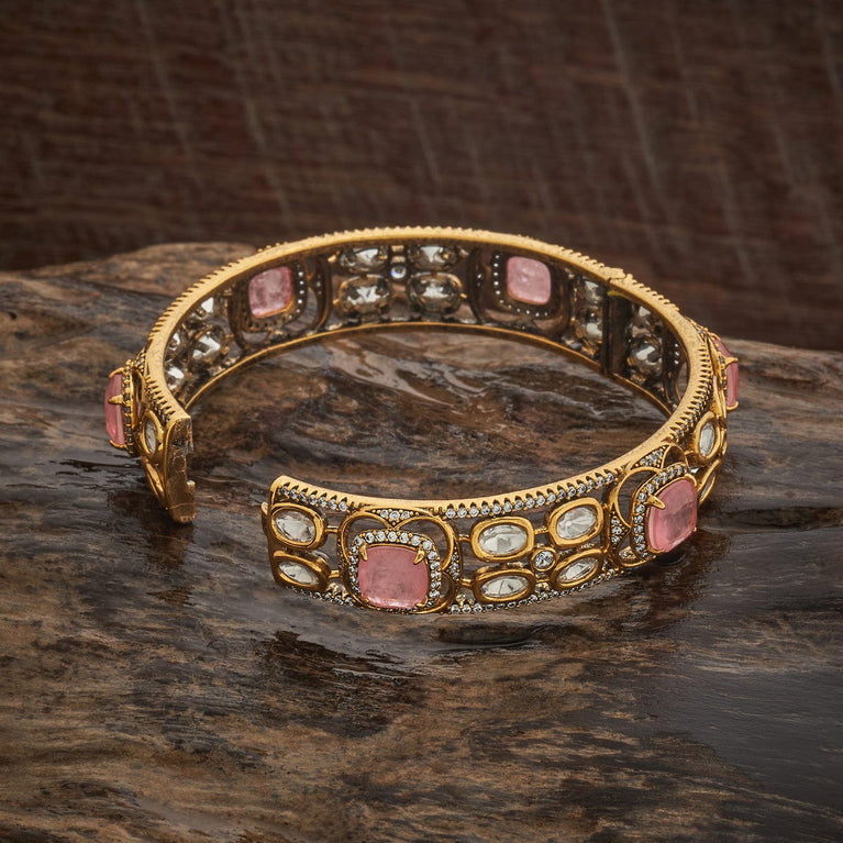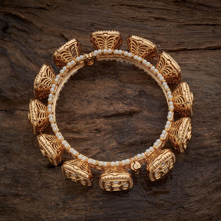 Kushal's Fashion Jewellery Kundan BangleOne look at our latest heavily studded Kundan bangle is enough to mesmerize you with its beauty and charm. This bangle has magnificent designs and work details to make all eyes rest on you. All you have to do is wear this dazzling bangle with your favorite outfit and watch how all heads turn toward you.