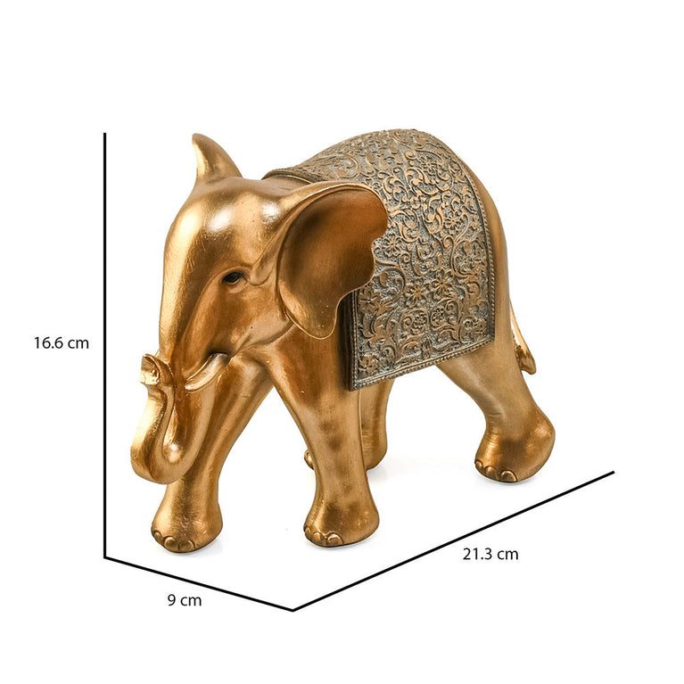 Curl Trunk Elephant Decorative Polyresin Showpiece (Grey & Gold)