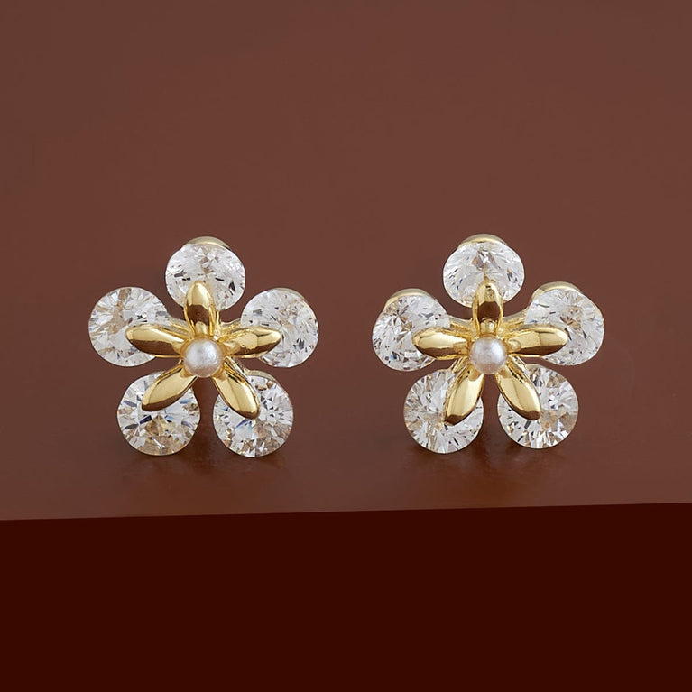 Kushal's Fashion Jewellery 92.5 Pure Silver Flower Design EarringOne look at our latest pair of 92.5 silver earrings is enough to make you fall in love with them. Thanks to their heavily studded white zircon look and three polish options, these stud earrings can make all eyes rest on you when you wear them with your favourite outfit.