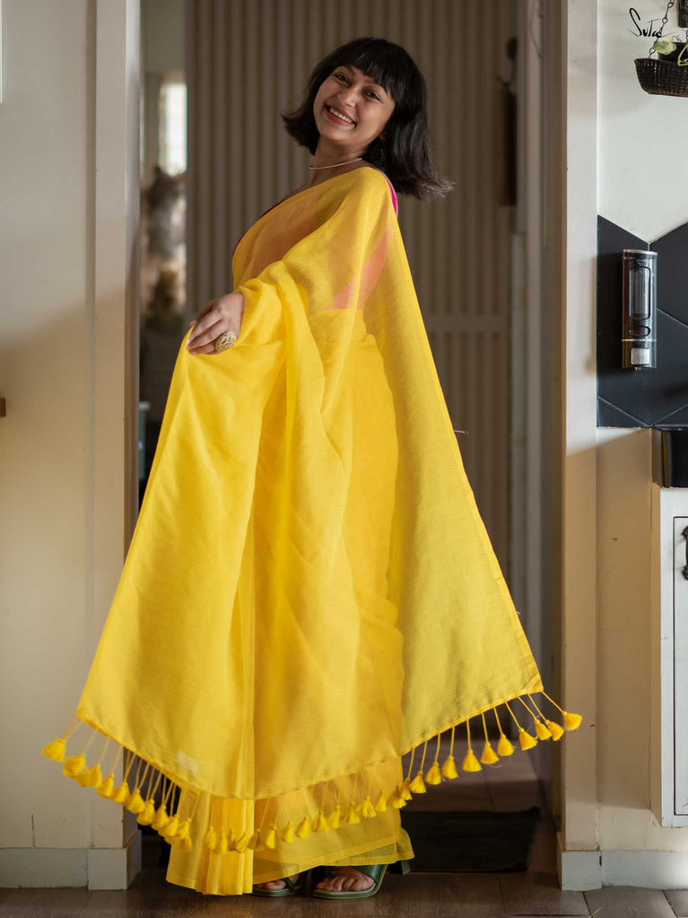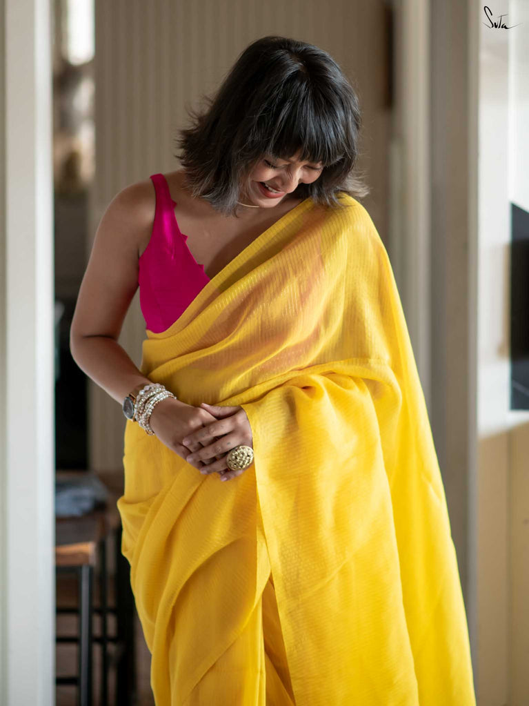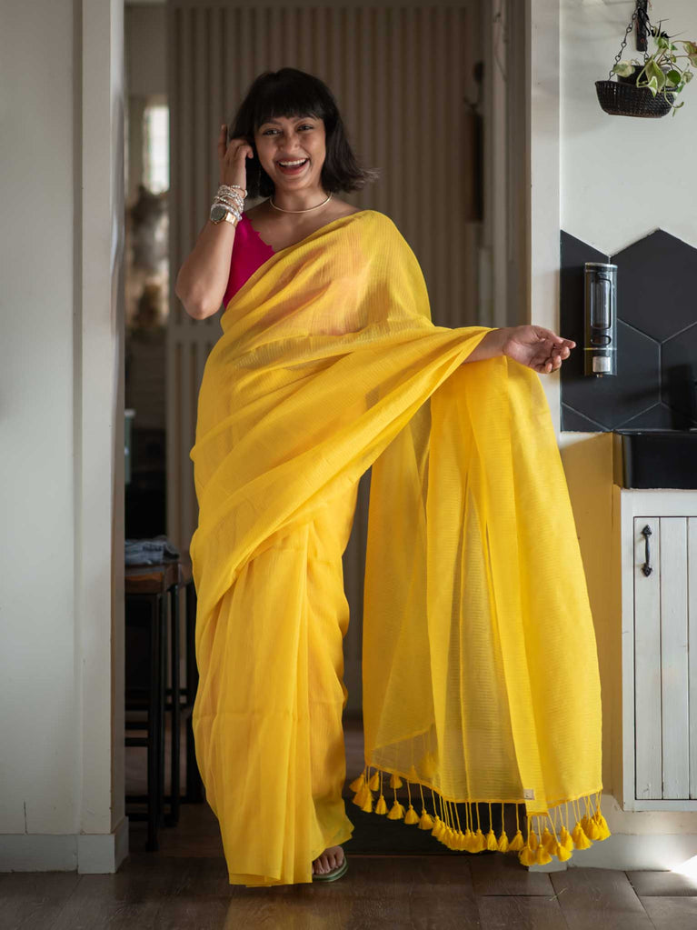 Mustard yellow handwoven cotton silk that lights you up. A spicy shade that complements every Indian skin tone. Feels warm, bold, and ready to turn heads. Wear it when you want to brighten the room—and yourself.