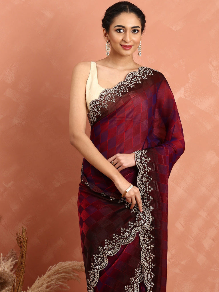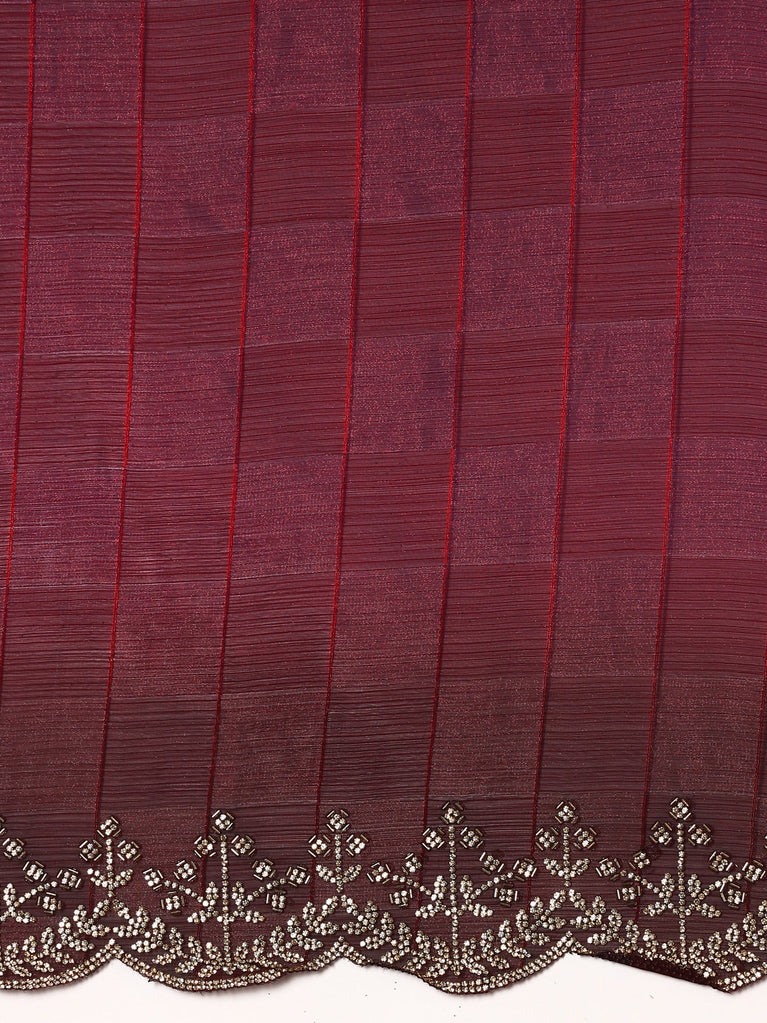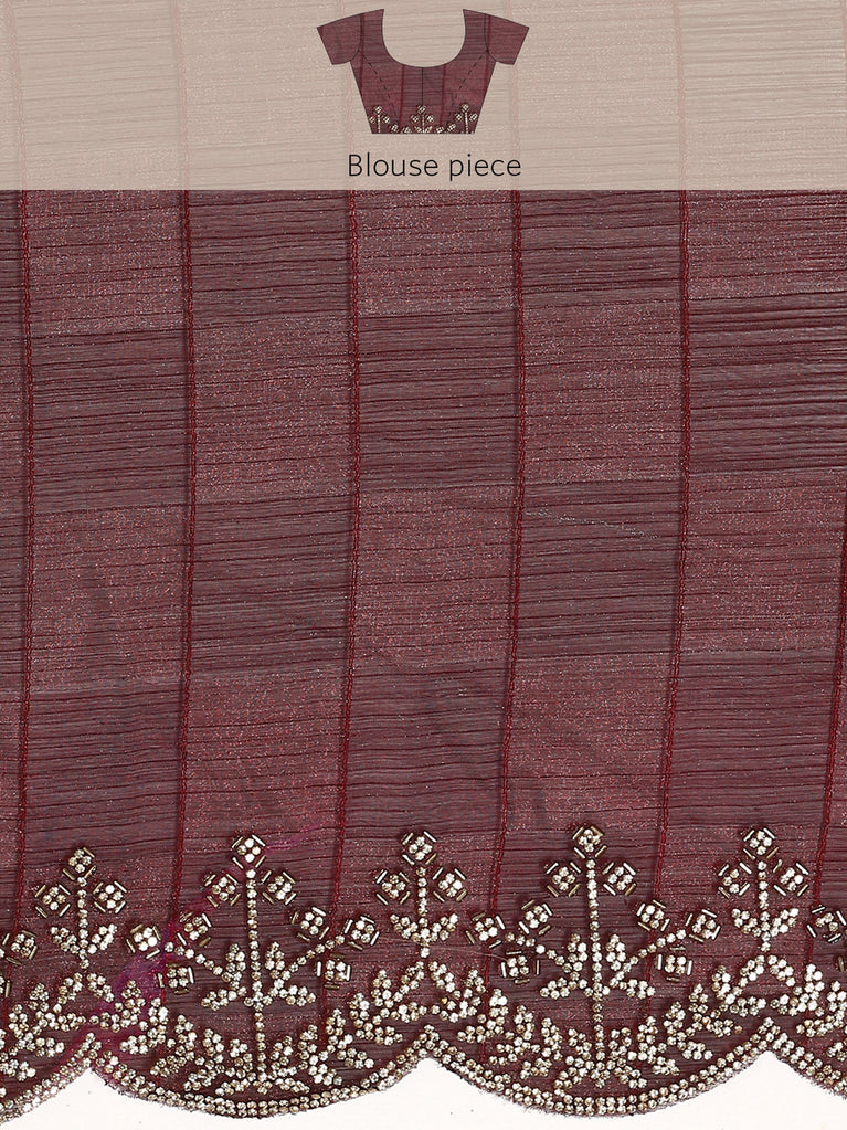 Mahroon Jimmy saree with cut Dana & pearl embroidery with ready made blouse