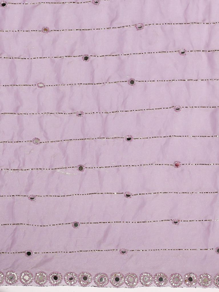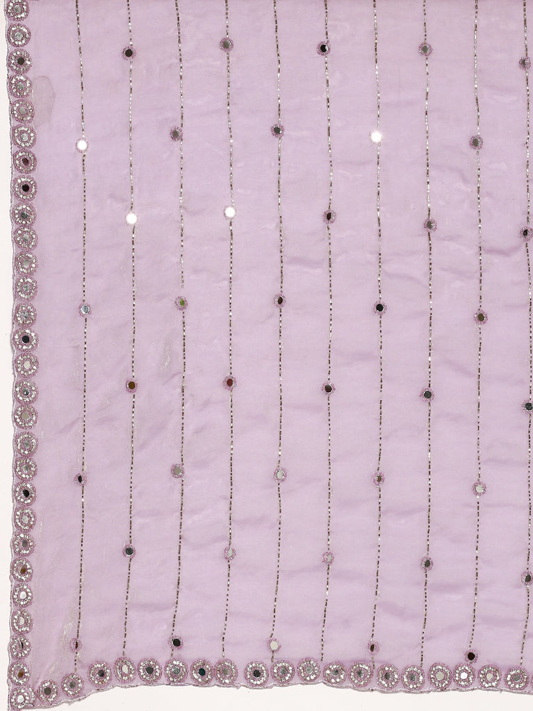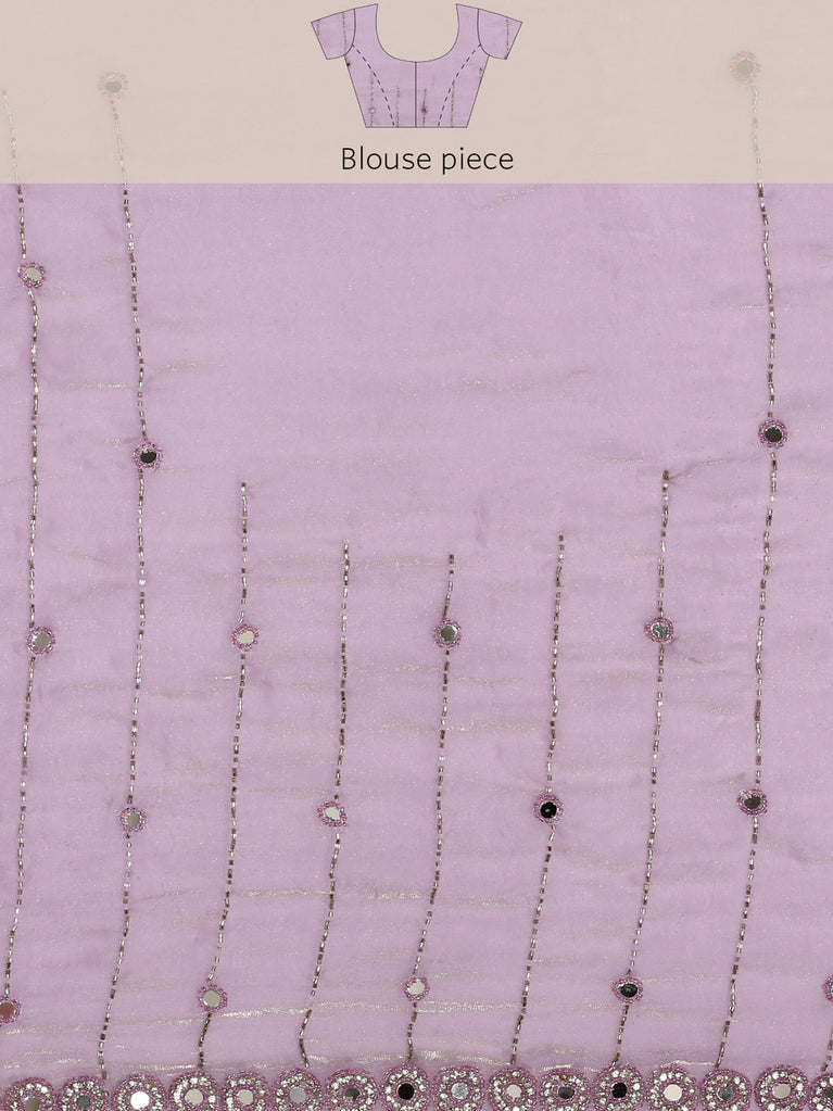Lilac Jimmy tissue saree with mirror work hand embroidery
