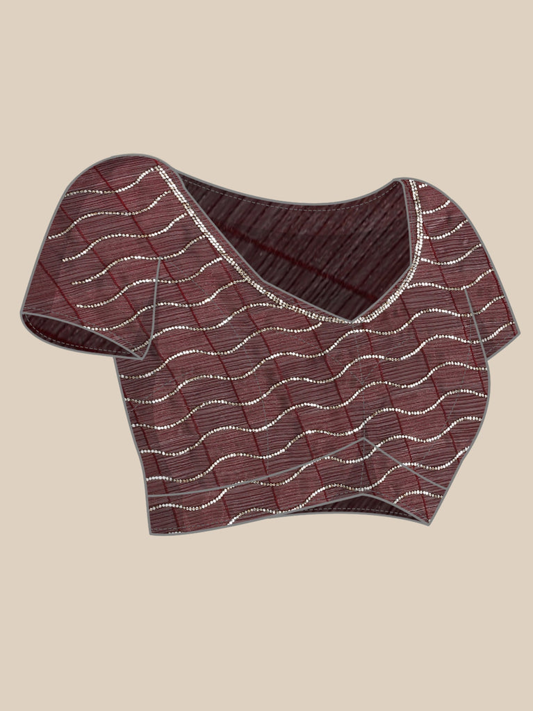 Elevate your traditional wardrobe with this elegant Mahroon Jimmy saree featuring intricate cut Dana and pearl embroidery. Crafted to enhance your grace, the detailed embellishments add a refined shimmer to the rich fabric. It comes with a ready-made blouse for a seamless and sophisticated ensemble, perfect for special occasions where you want to make a lasting impression.