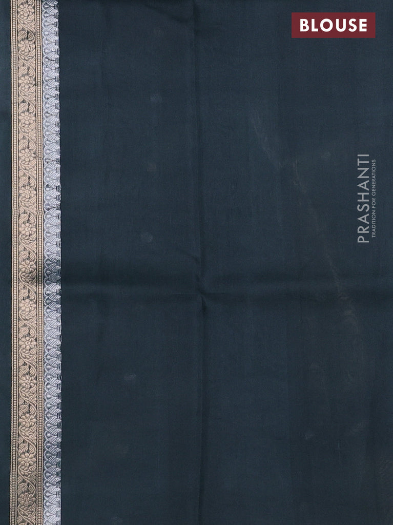 Banarasi organza silk saree dark blue with silver & gold zari weaves and zari woven piping border