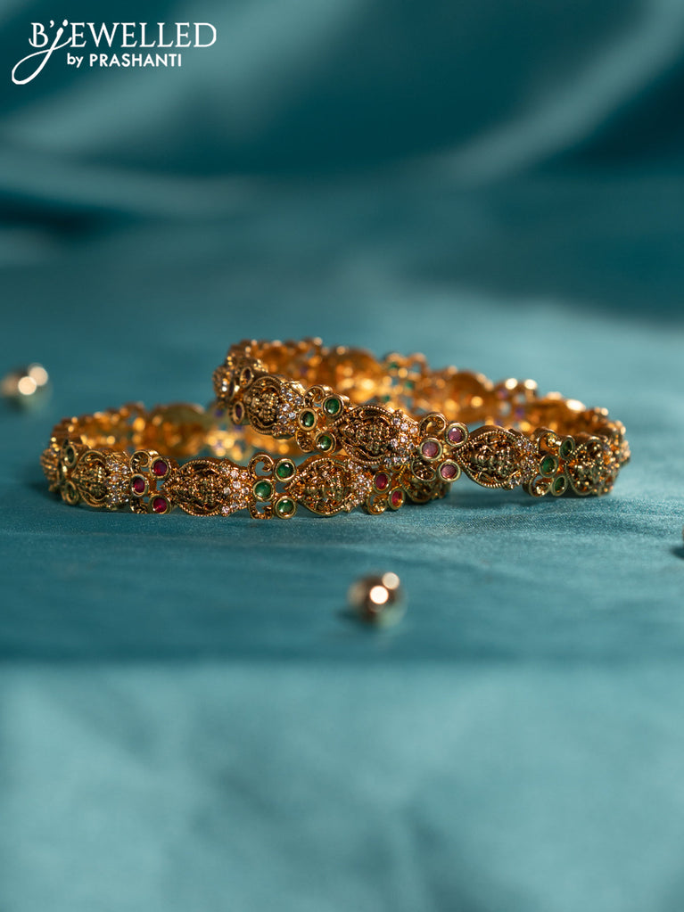 Antique beade haaram lakshmi pendant with kemp stones and pearl & golden beads hanging