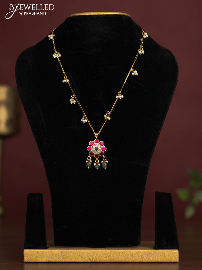Antique beaded haaram pallakku pendant with pink kemp stones and pearl & green beads hanging