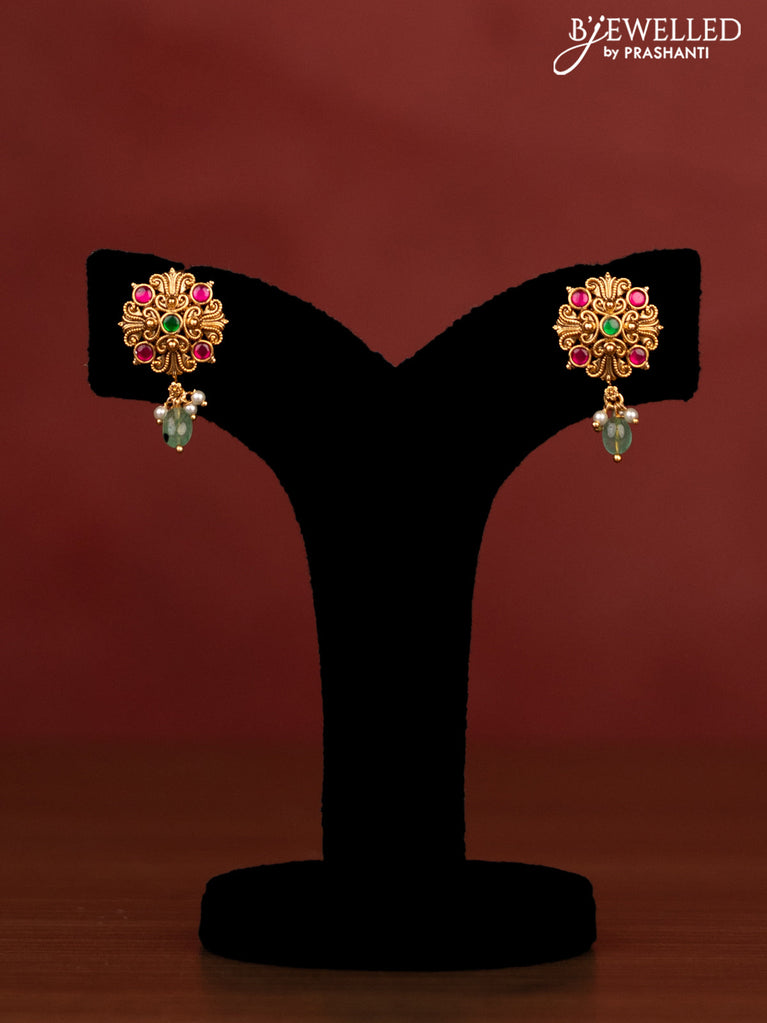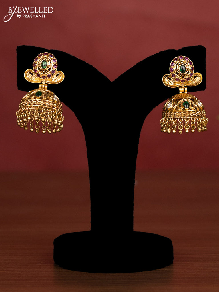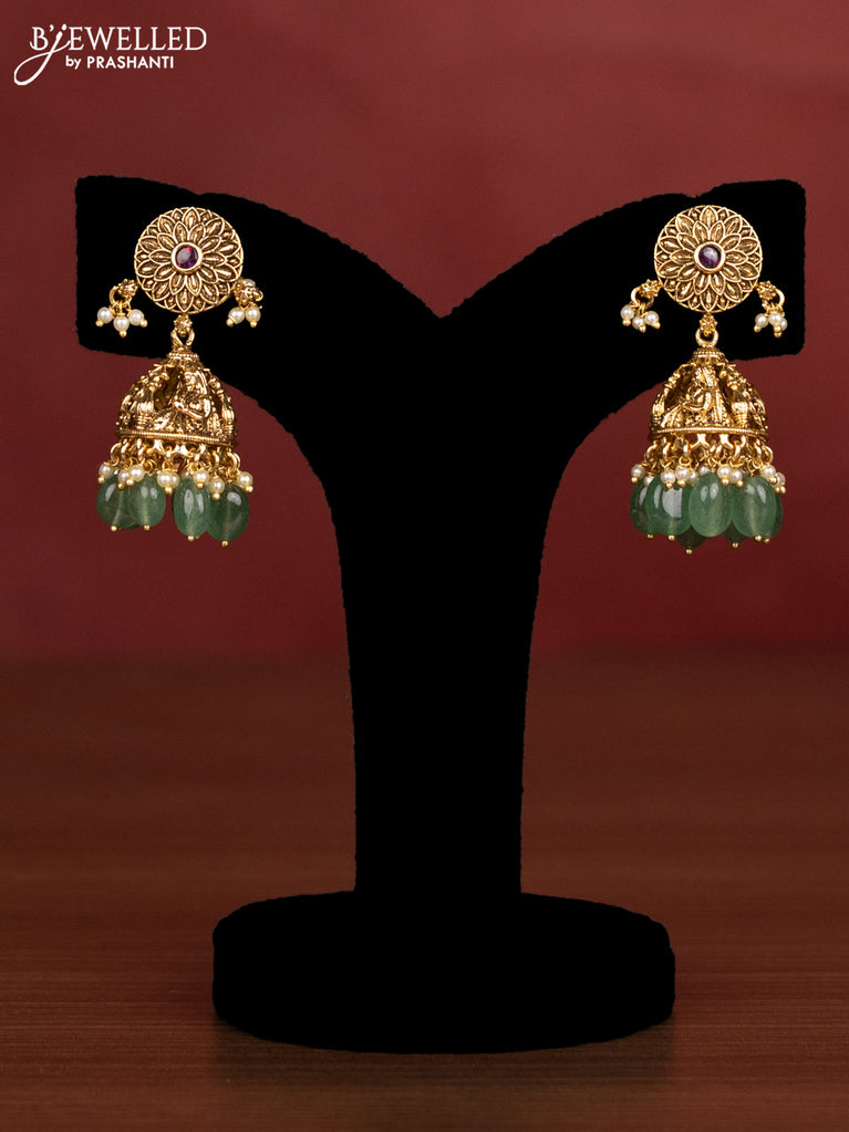 Antique big size jhumka lakshmi design with kemp & cz stones and pearl hangings