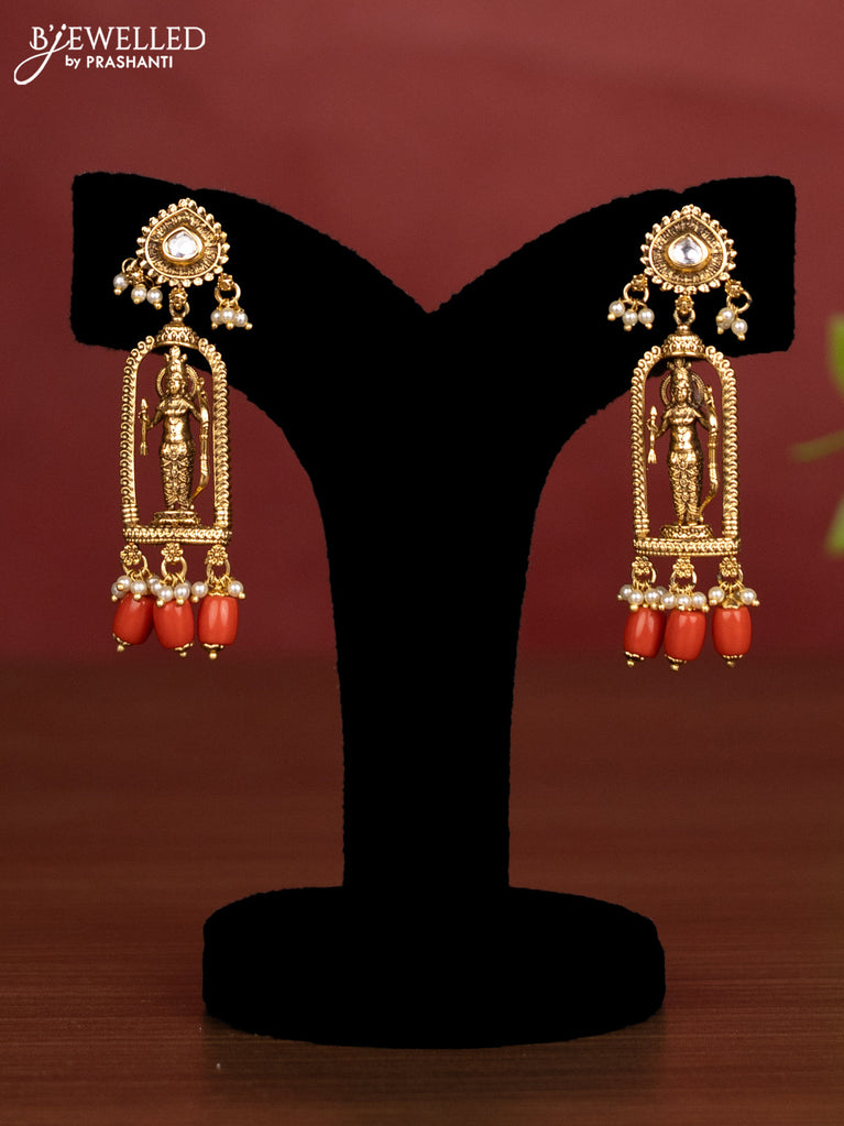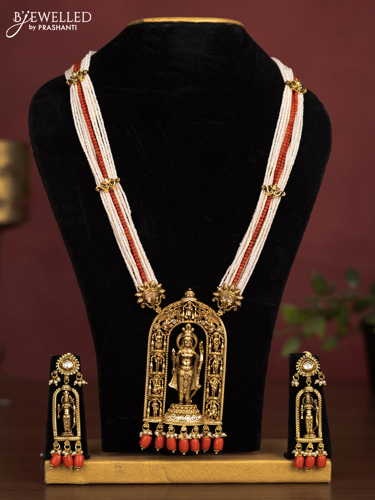 Antique beaded necklace ramdarbar pendant with kundan stones and pearl red beads hanging
