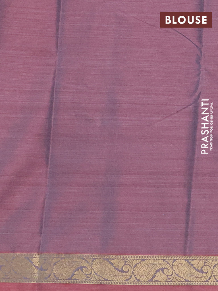 Bangalori semi silk saree light pink and purple with allover elephant butta ikat weaves and zari woven border