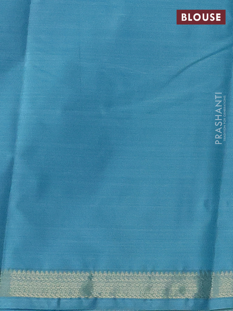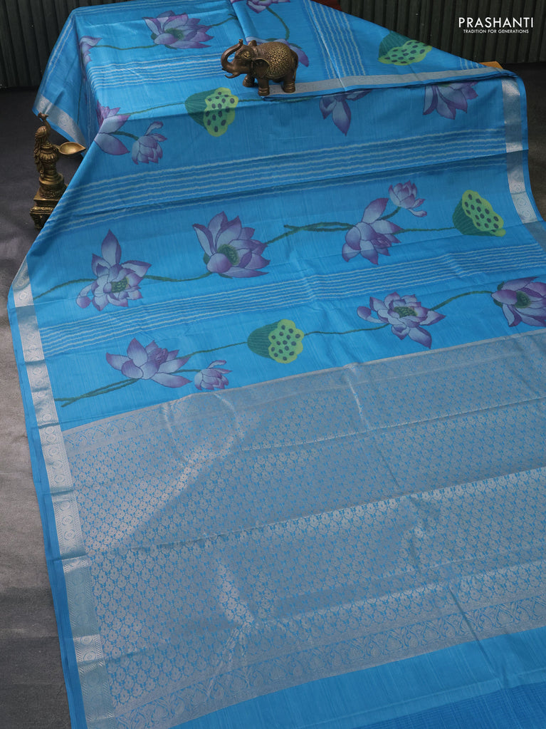 Bangalori semi silk saree light blue with floral design ikat weaves and zari woven border