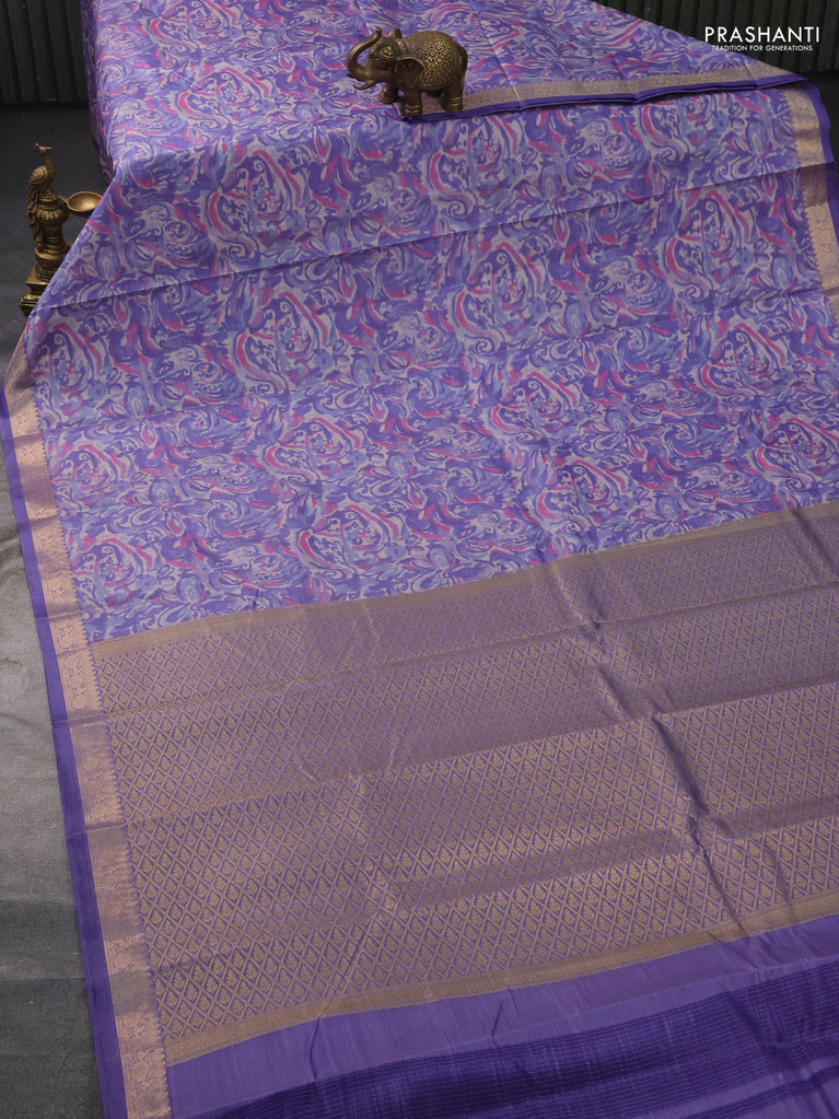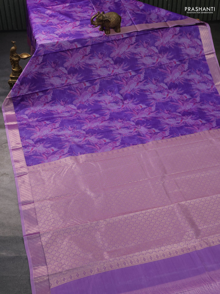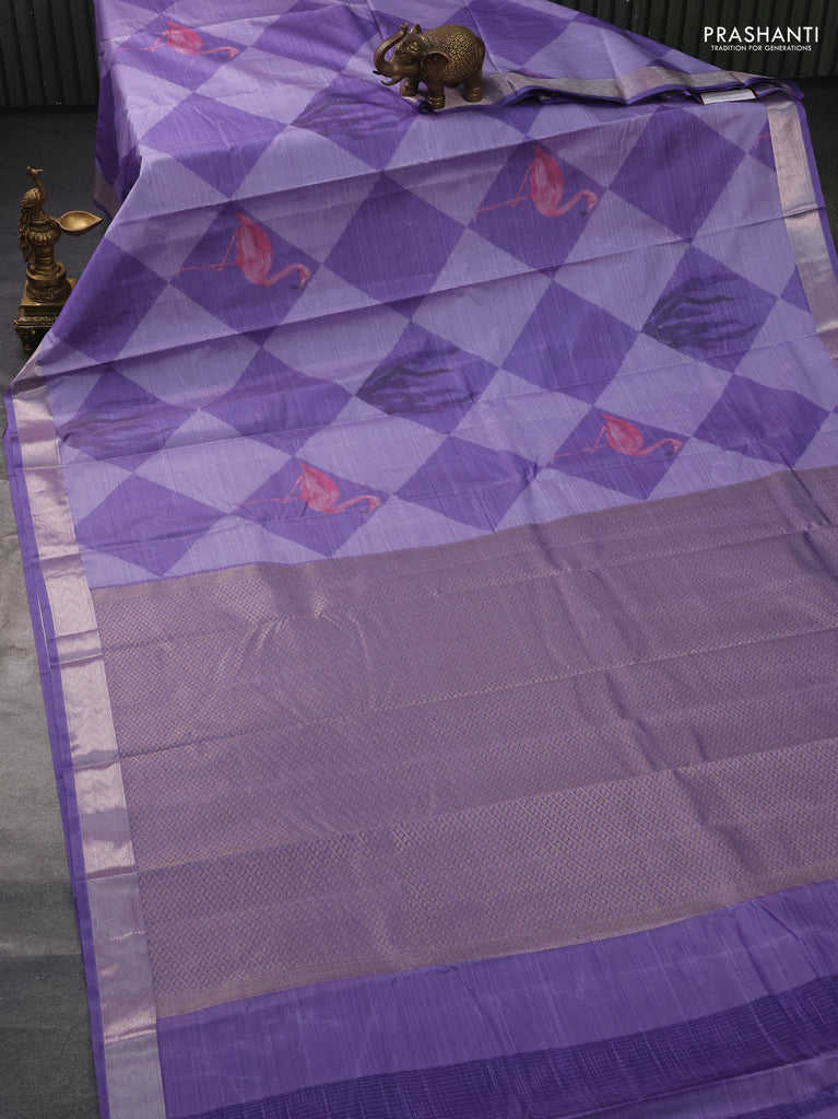 Bangalori semi silk saree lavender with floral design ikat weaves and zari woven border