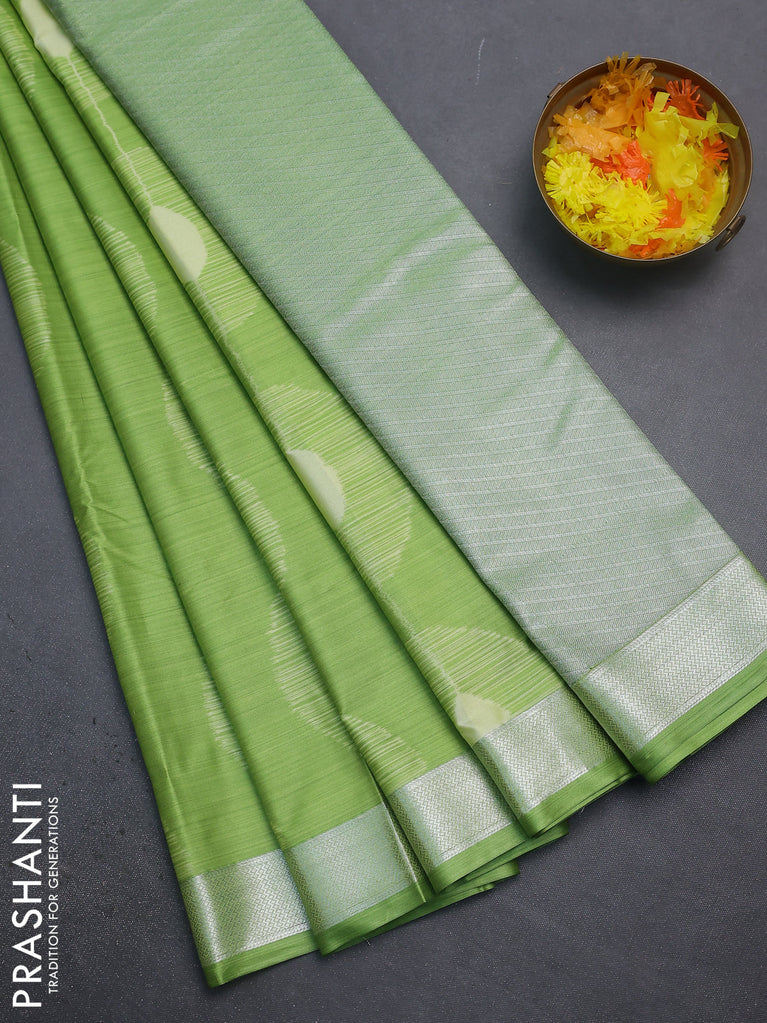 Bangalori semi silk saree light green with allover ikat weaves and zari woven border
