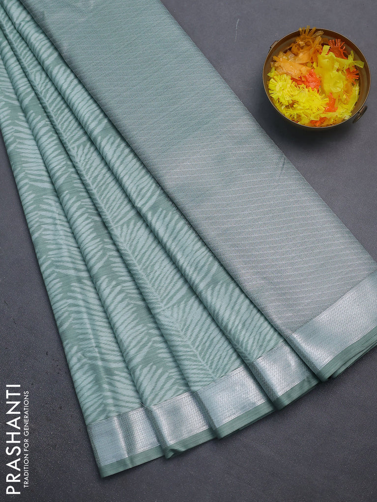 Bangalori semi silk saree pastel green with allover ikat weaves and zari woven border