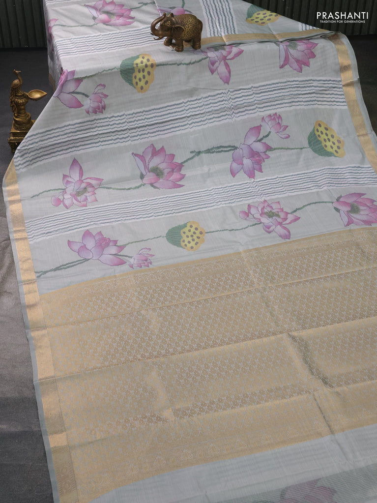 Bangalori semi silk saree pastel grey with allover floral ikat weaves and zari woven border