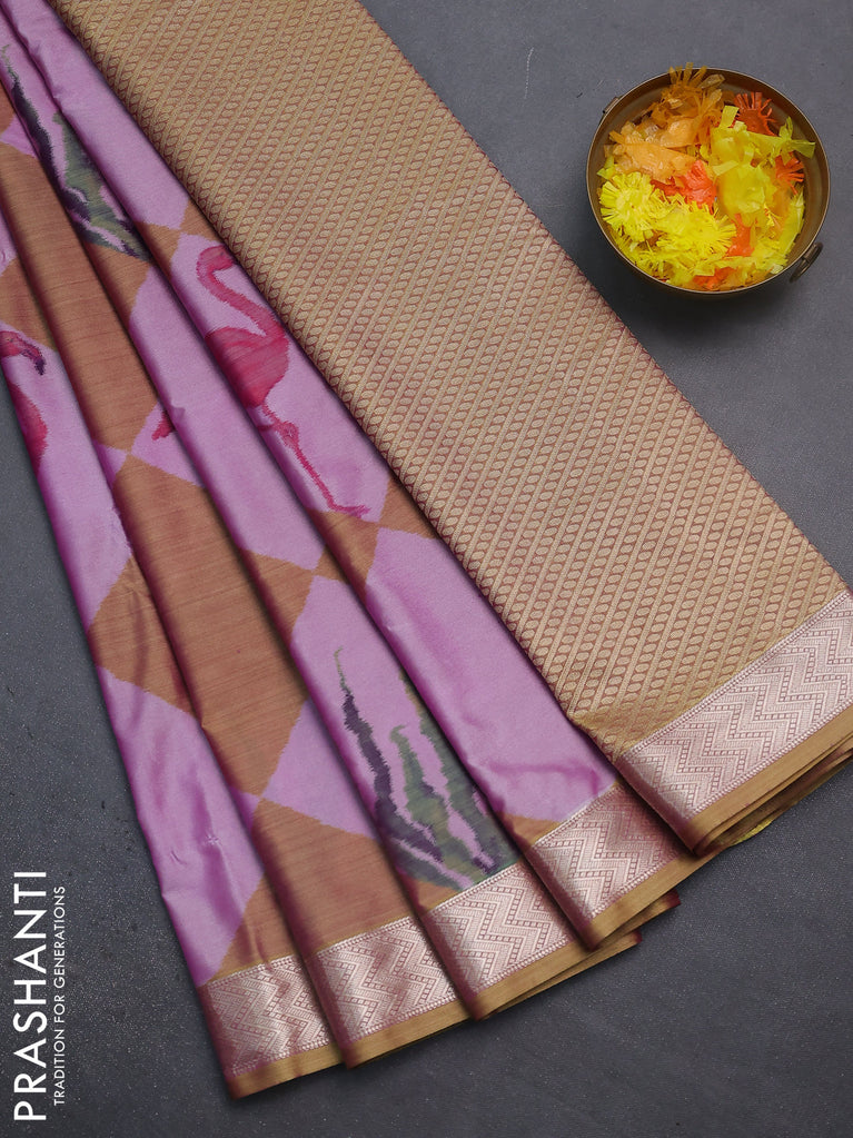 Bangalori semi silk saree mild lavender with allover elephant butta ikat weaves and zari woven border
