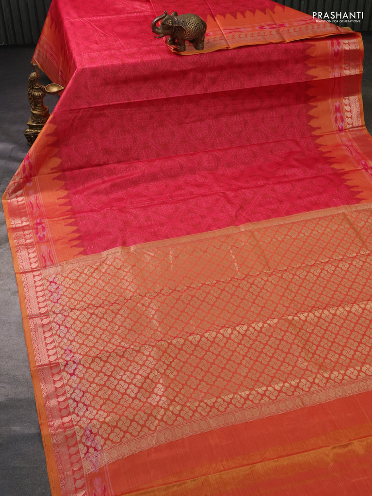 Bangalori semi silk saree orange and pink with allover ikat weaves and zari woven border
