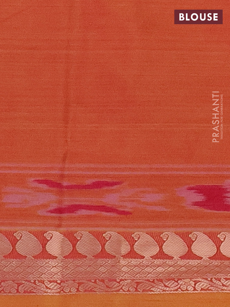 Bangalori semi silk saree orange with allover ikat weaves and zari woven border