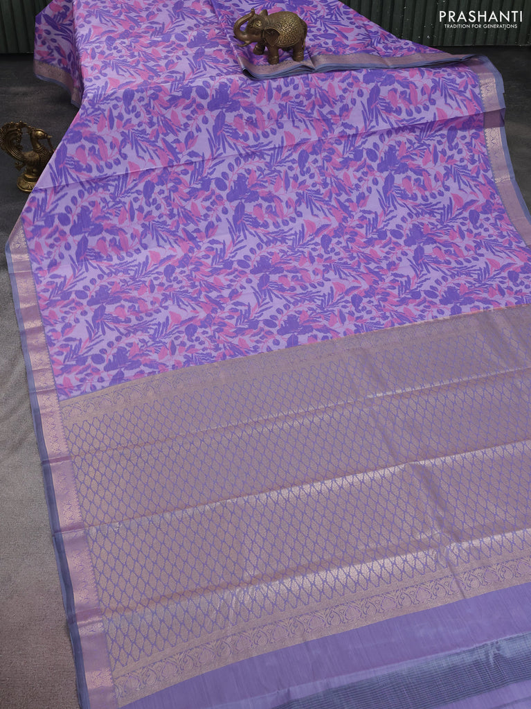 Bangalori semi silk saree mild lavender and grey with allover ikat weaves and zari woven border