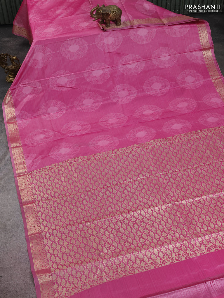Bangalori semi silk saree light pink with allover ikat weaves and zari woven border