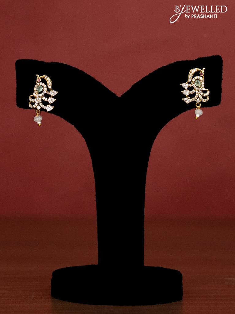 Beaded mint green necklace peacock side pendant with ruby & cz stones in victorian finish