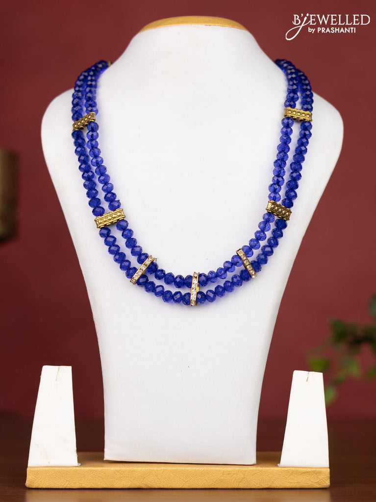 Crystal double layer blue beaded necklace with cz stone without earrings