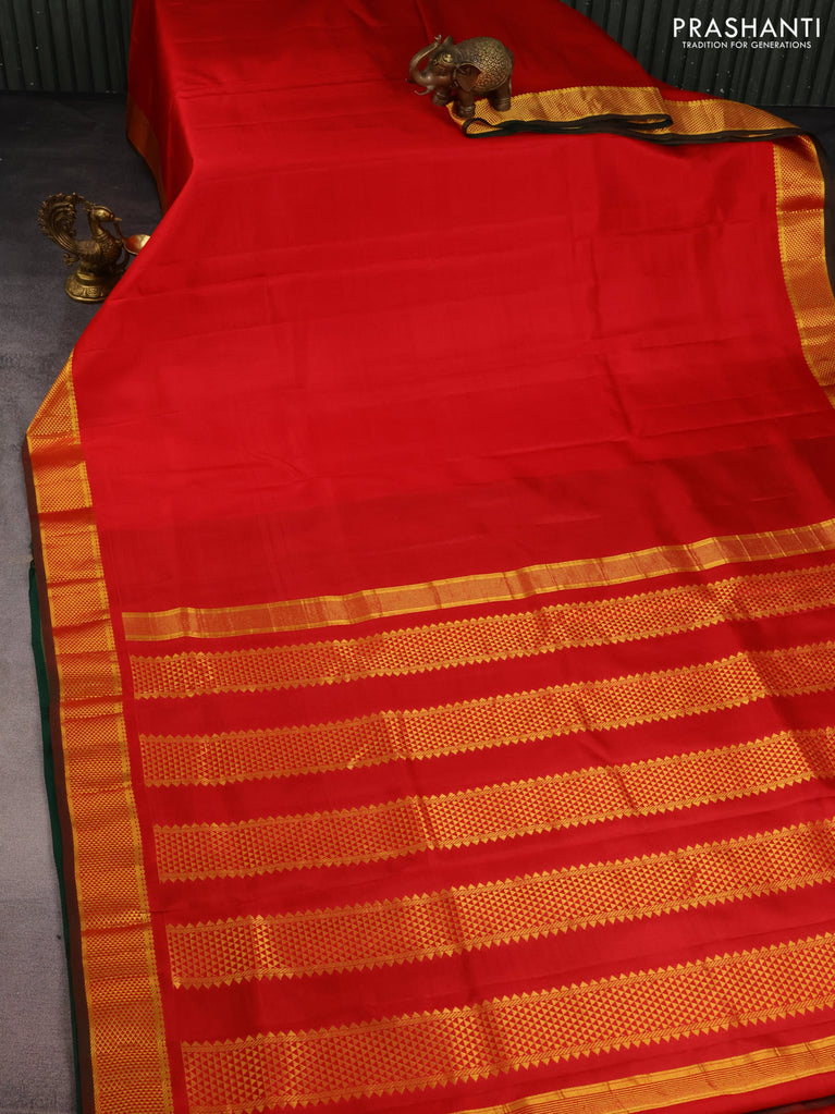 10 Yards silk saree red and green with plain body and zari woven border