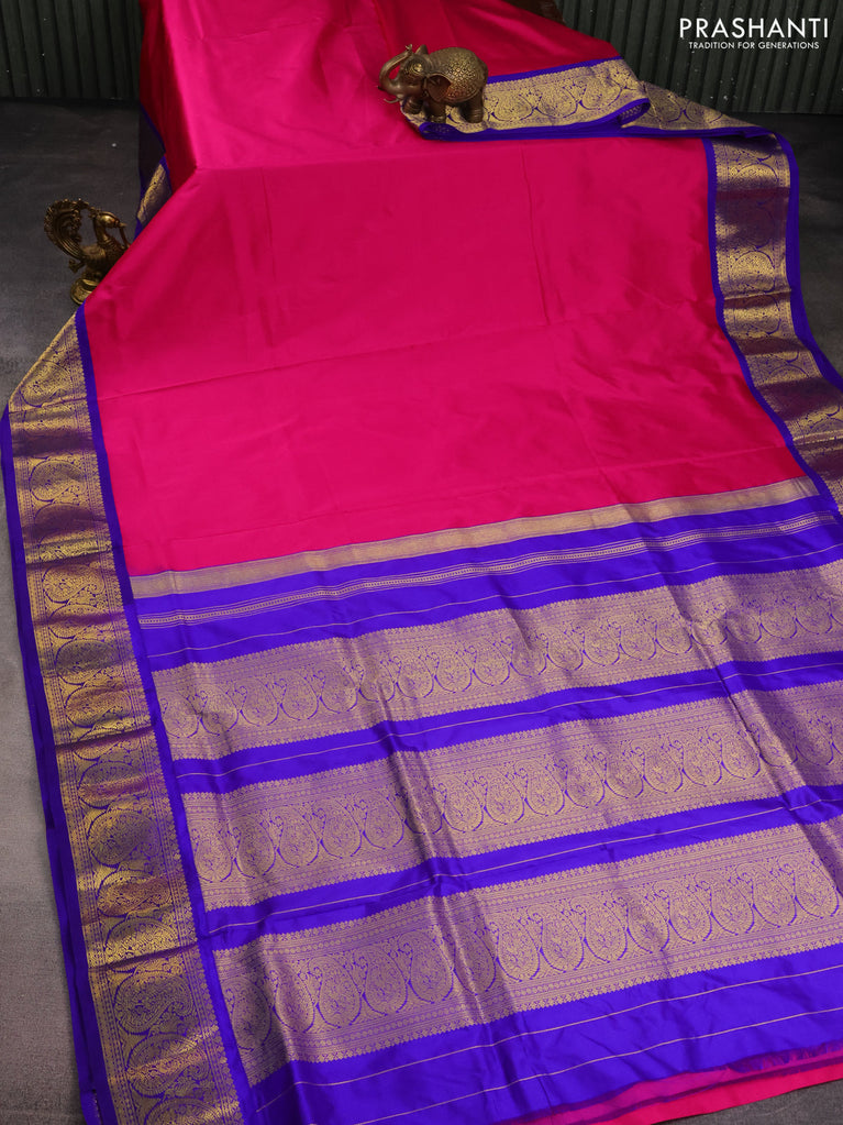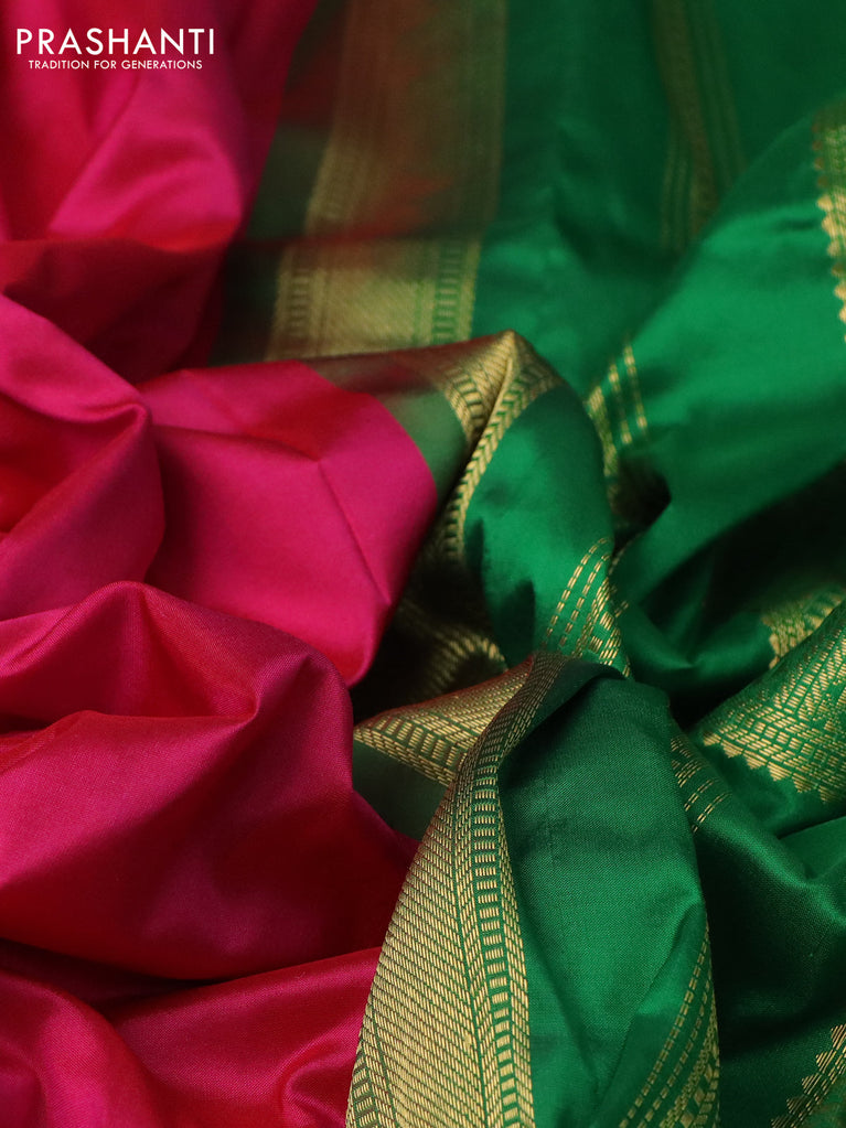 10yards pure silk saree bottle green and pink with plain body and temple design rettapet zari woven border