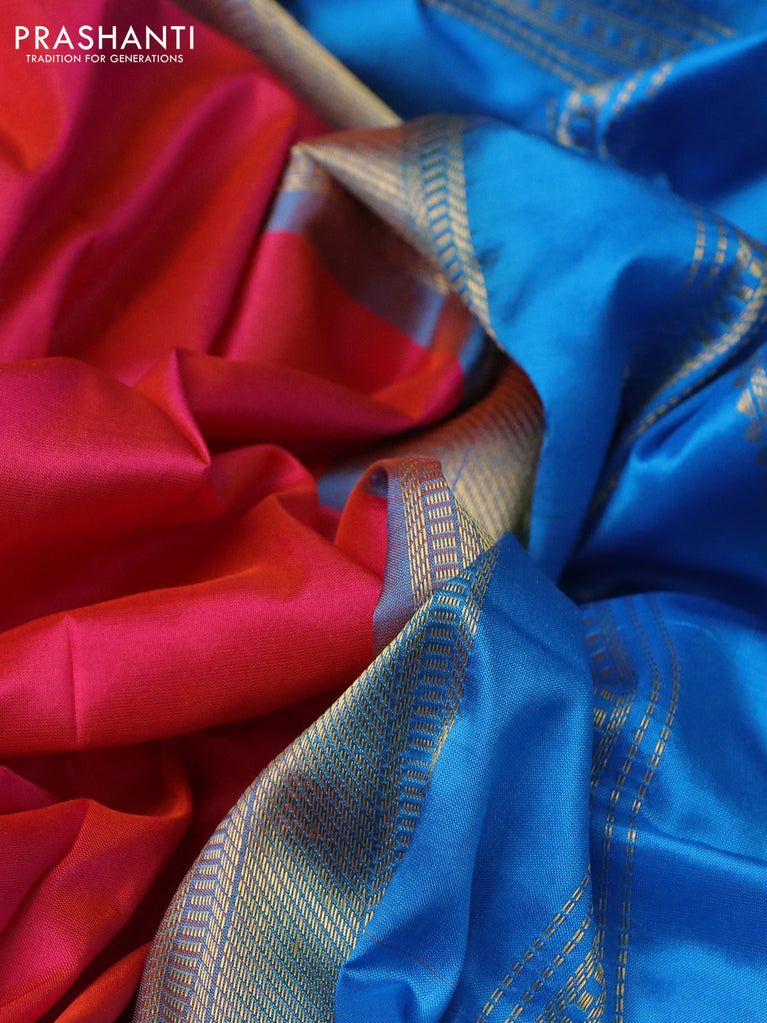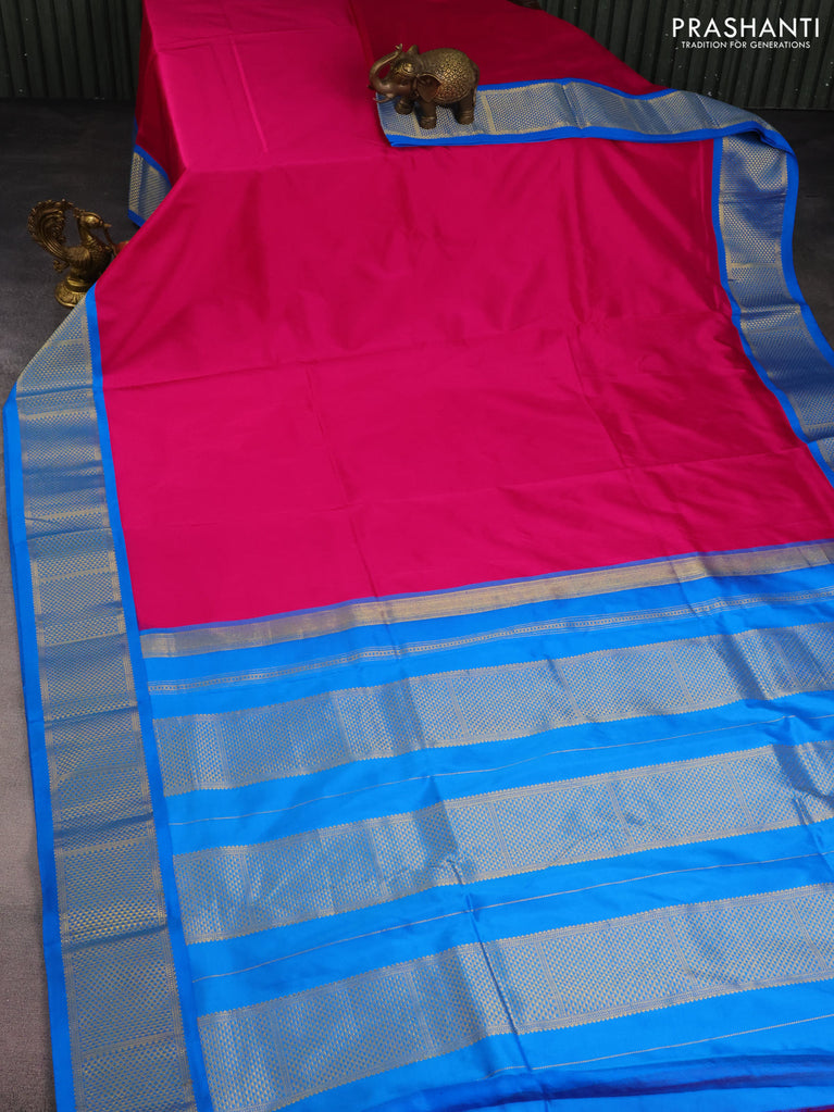 10 Yards silk saree pink and blue with plain body and zari woven border