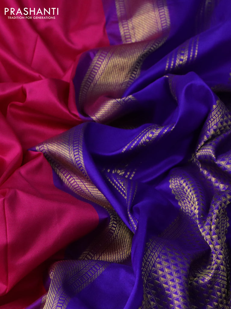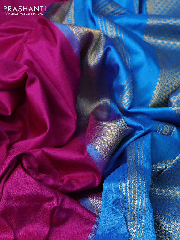10 Yards silk saree purple and cs blue with plain body and zari woven border