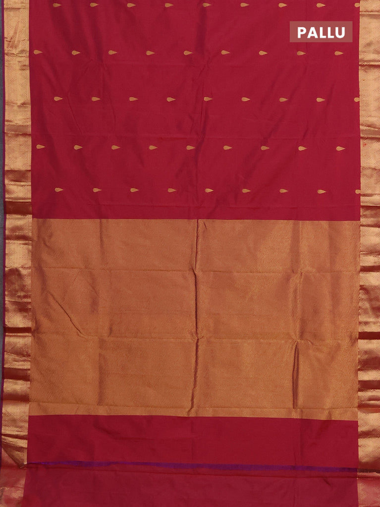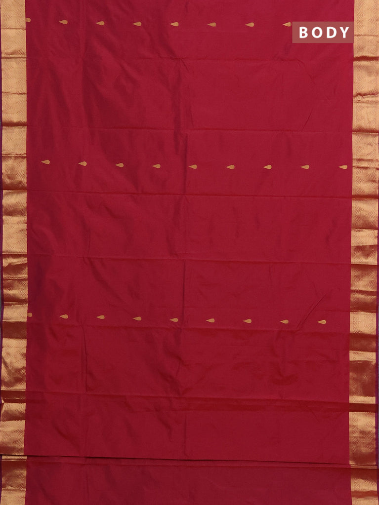 Arani semi silk saree dual shade of maroon with zari woven thilak buttas and zari woven border