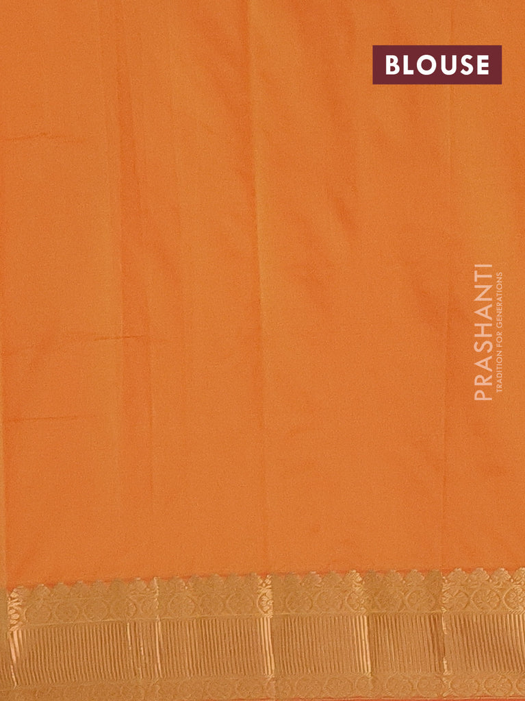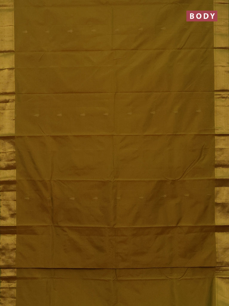 Arani semi silk saree dual shade of mustard yellow with zari woven thilak buttas and zari woven border