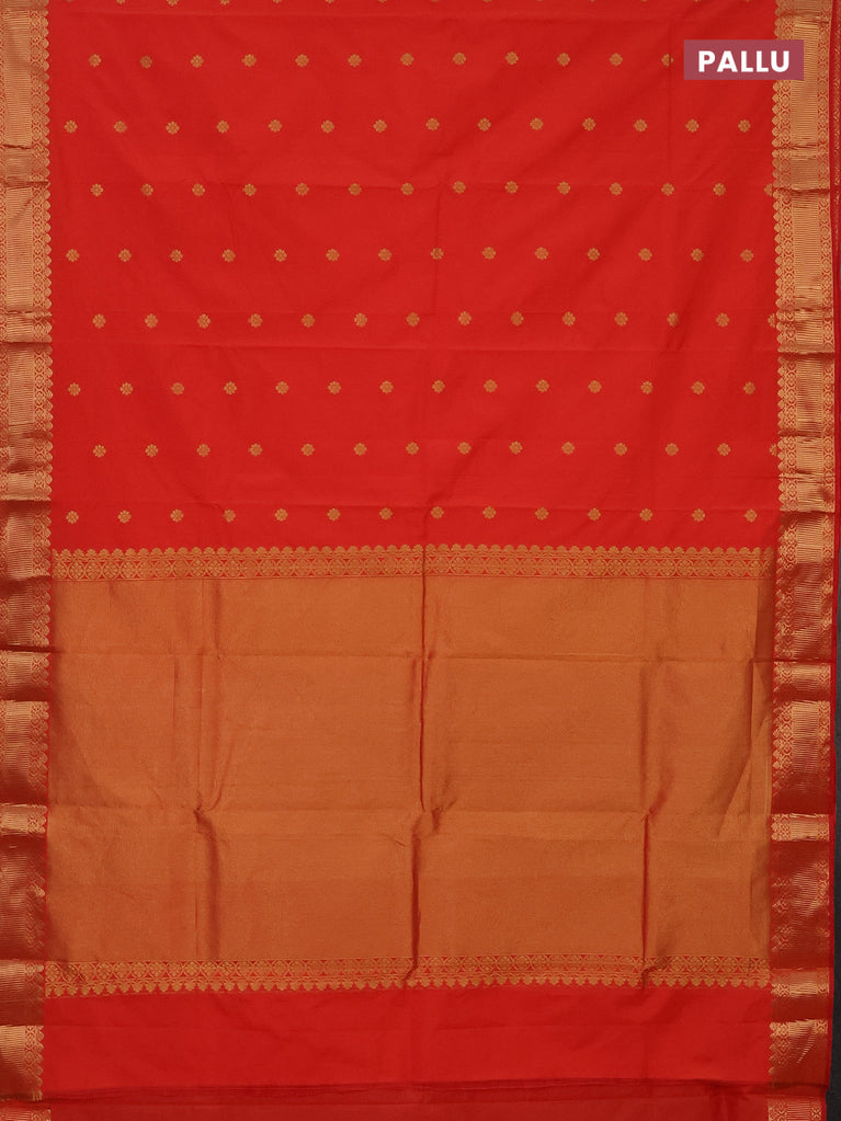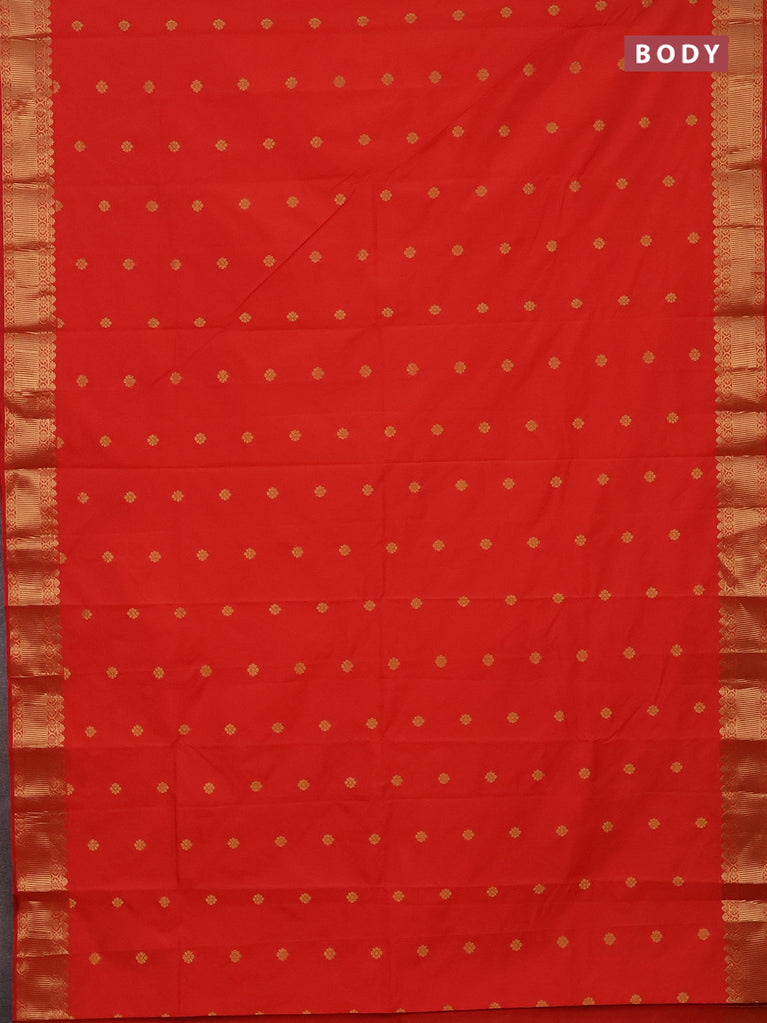 Arani semi silk saree orange with zari woven floral buttas and zari woven border