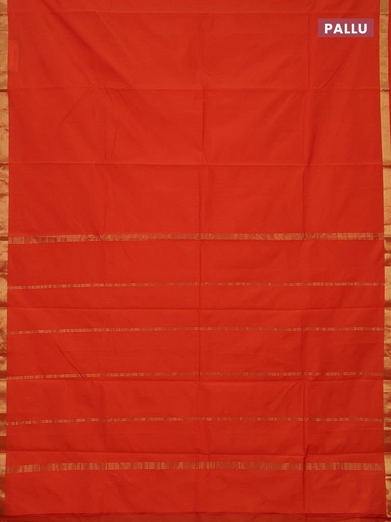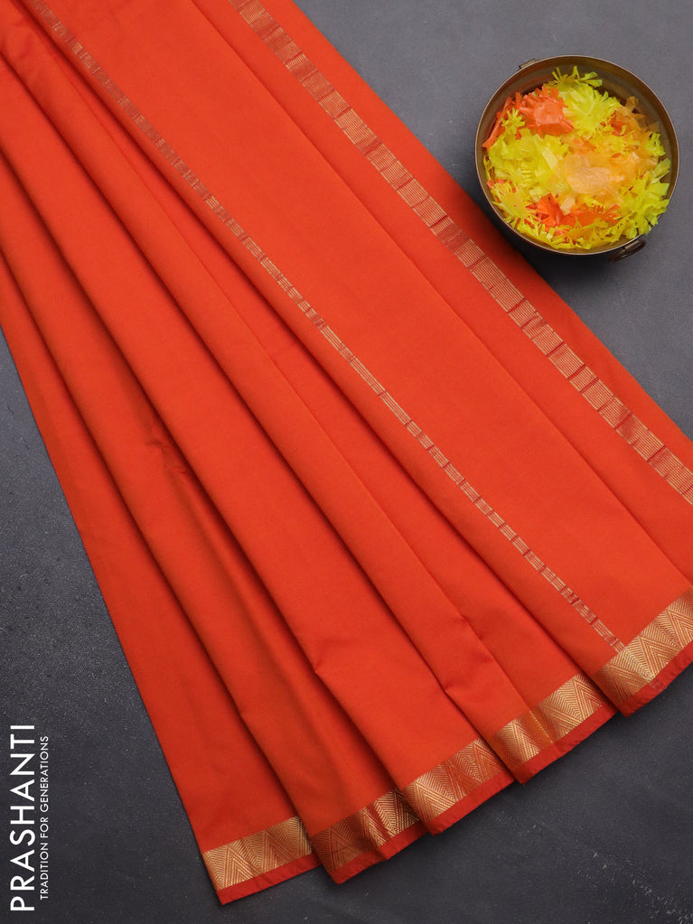 Arani semi silk saree orange with plain body and small zari woven border