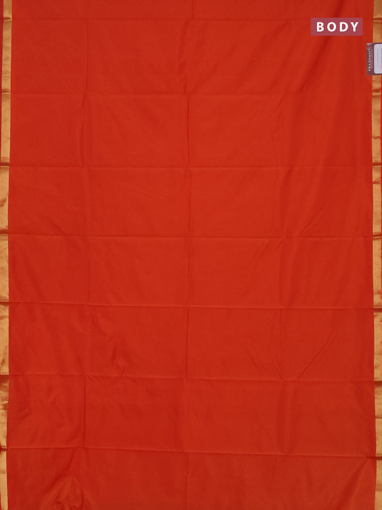 Arani semi silk saree orange with plain body and zari woven border