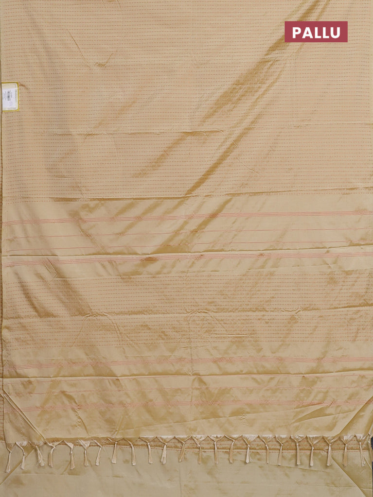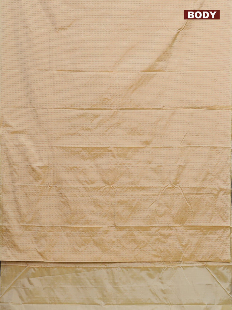 Arani semi silk saree pale yellow with allover copper zari weaves in borderless style