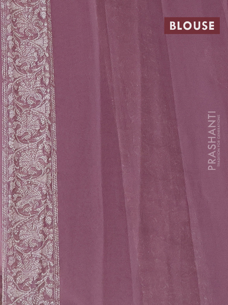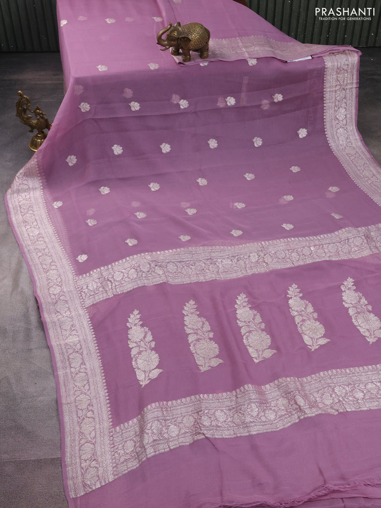 Banarasi chiffon silk saree pastel lavender with silver zari woven buttas and silver zari woven border