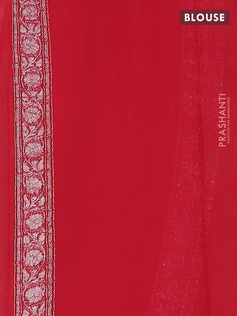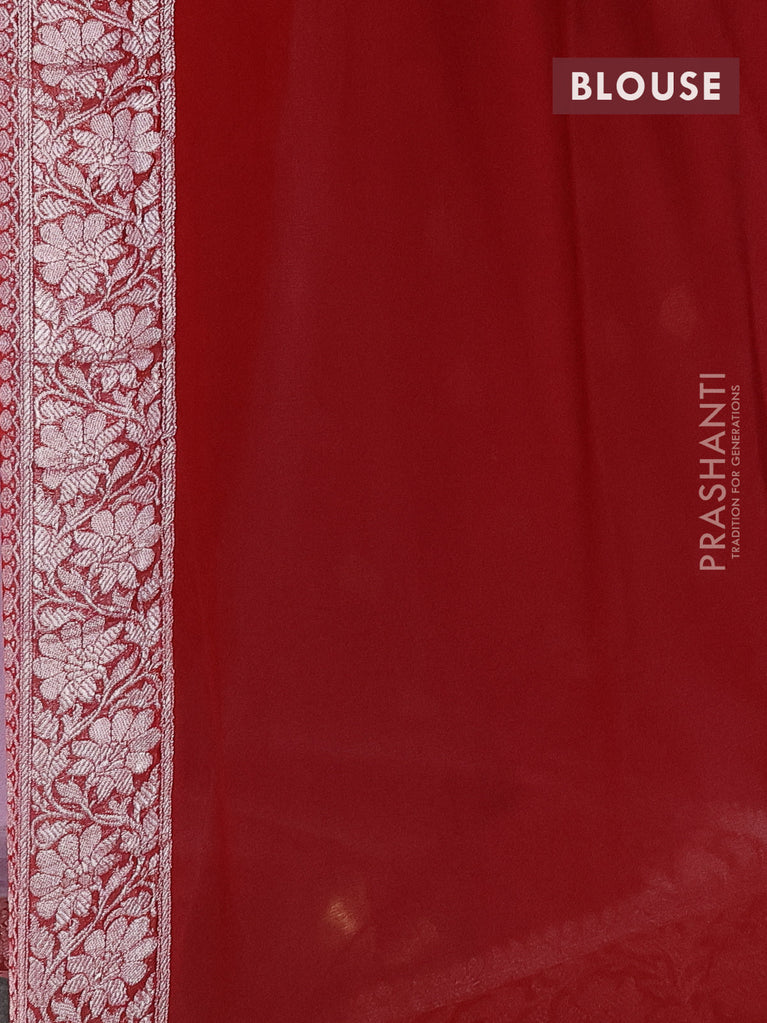 Banarasi chiffon silk saree lotus pink and red with silver zari woven buttas and floral silver zari woven border