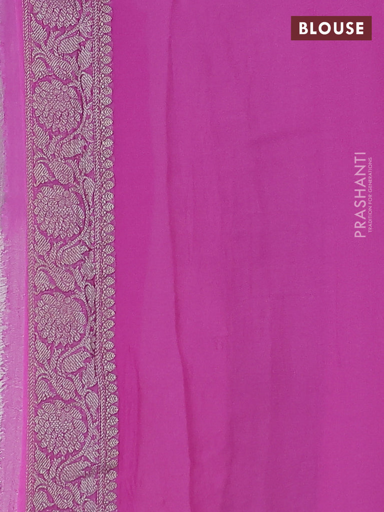 Banarasi chiffon silk saree magenta pink with silver zari woven buttas and silver zari woven border