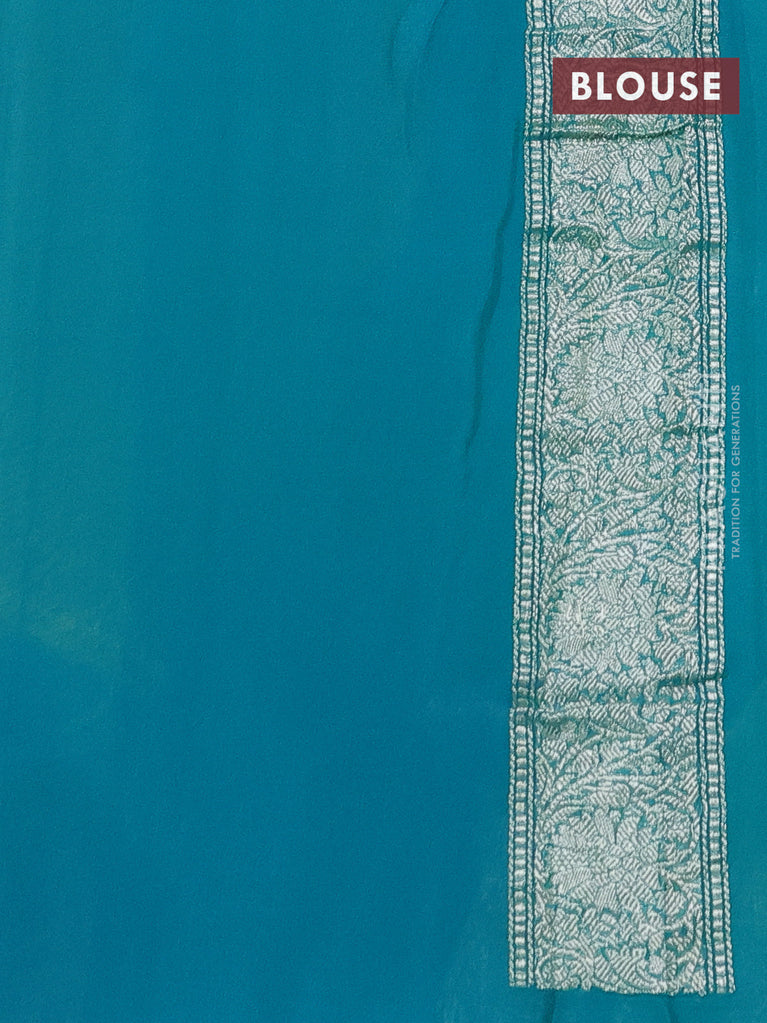 Banarasi chiffon silk saree lime yellow and teal blue with silver zari woven buttas and silver zari woven border