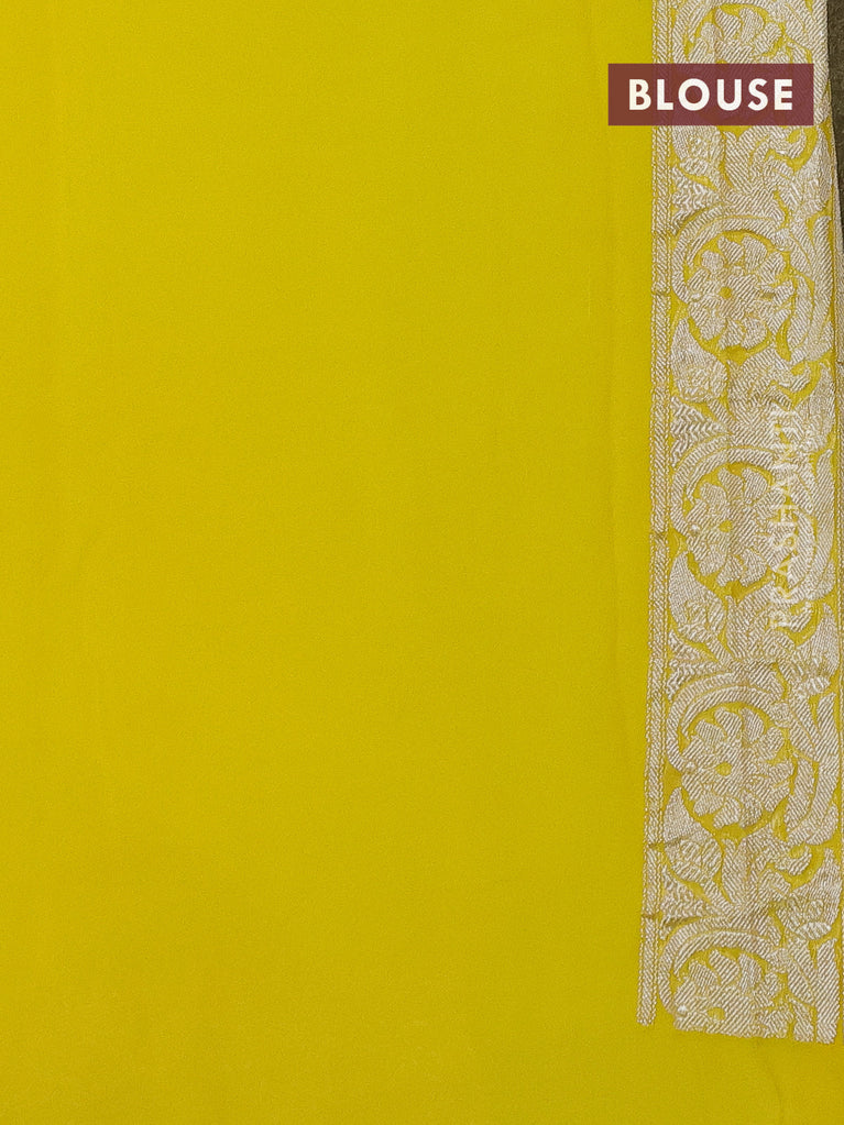 Banarasi chiffon silk saree yellow with silver zari woven buttas and silver zari woven border