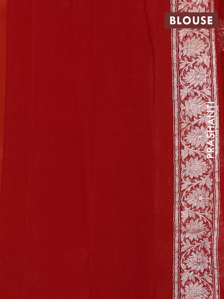 Banarasi chiffon silk saree yellow and kumkum red with silver zari woven buttas and silver zari woven border
